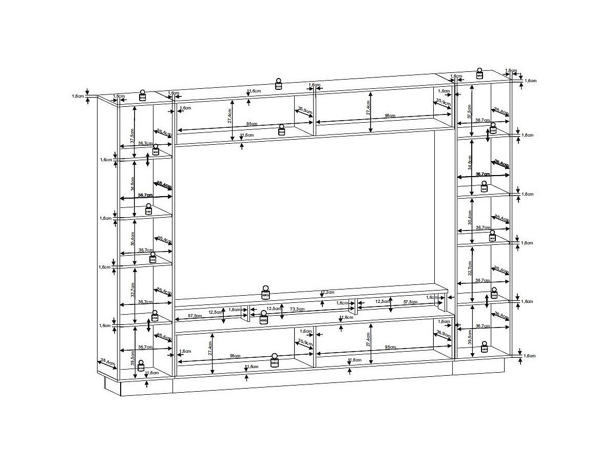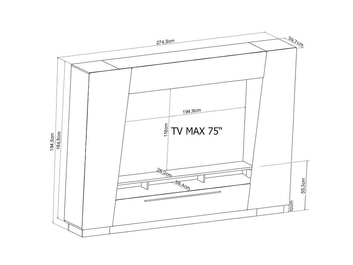 - Dimensioni complessive: L274,7xP39,7xH194,5 cm