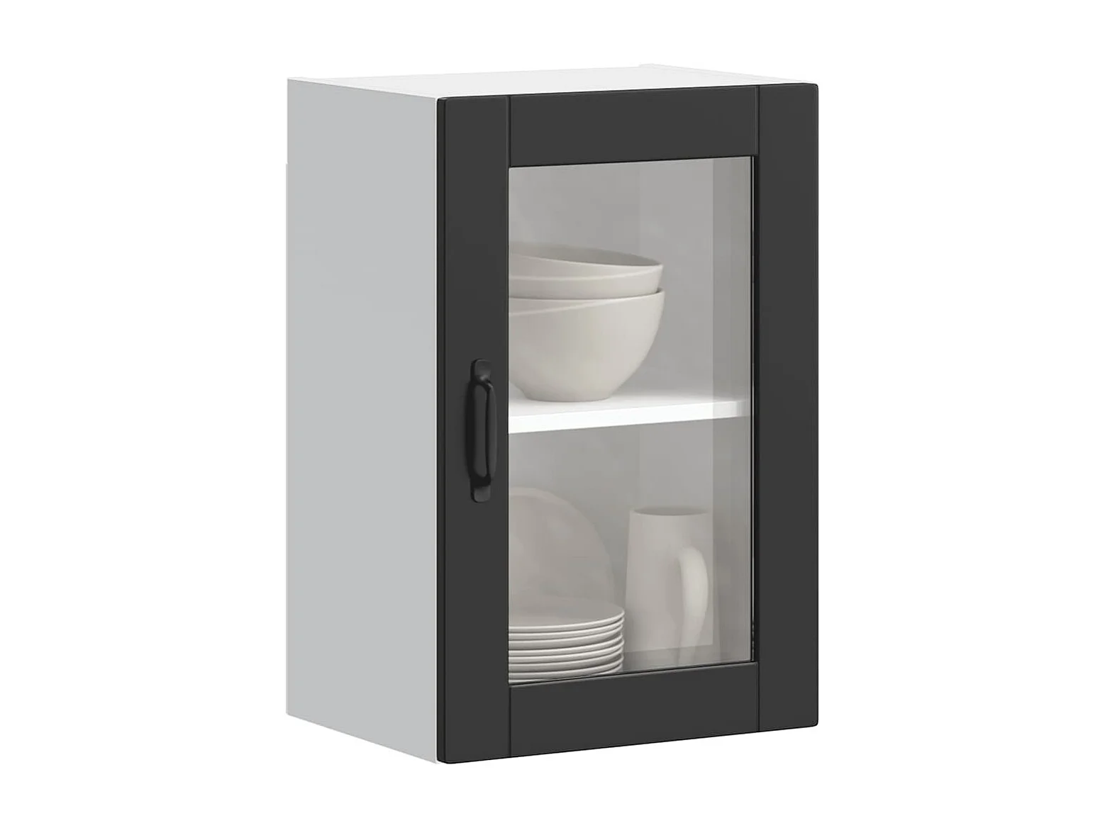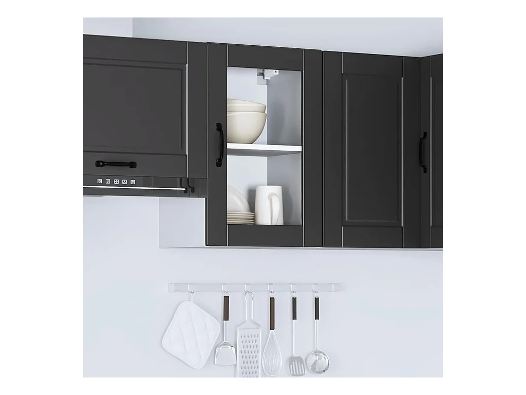 Pensile da cucina nero con anta in vetro