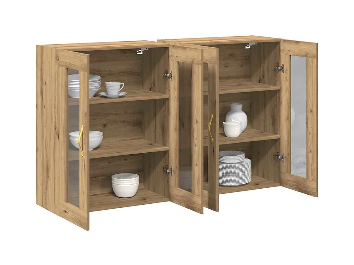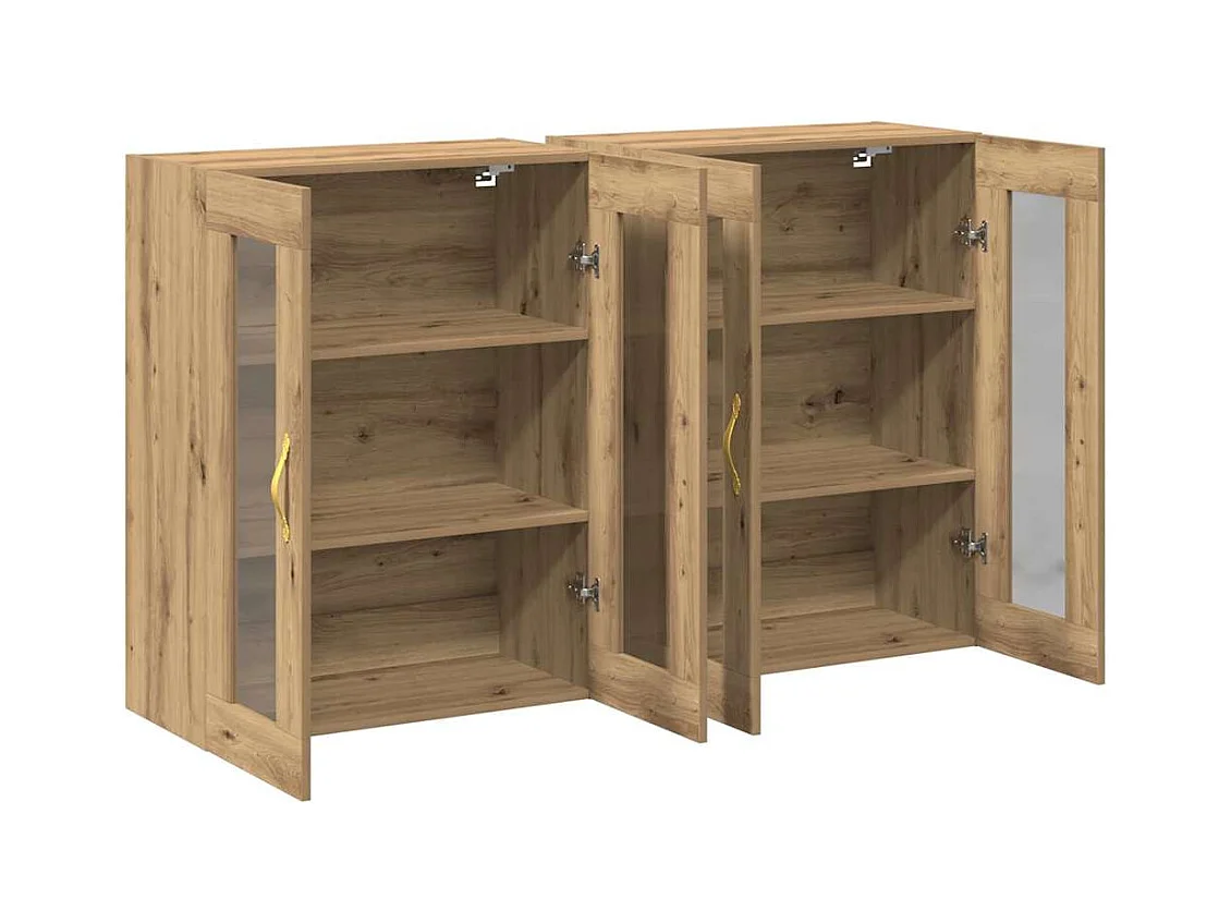 Pensili da parete a 2 pezzi in rovere Artisan da 69,5 x 34 x 90 cm, realizzati in legno ingegnerizzato.