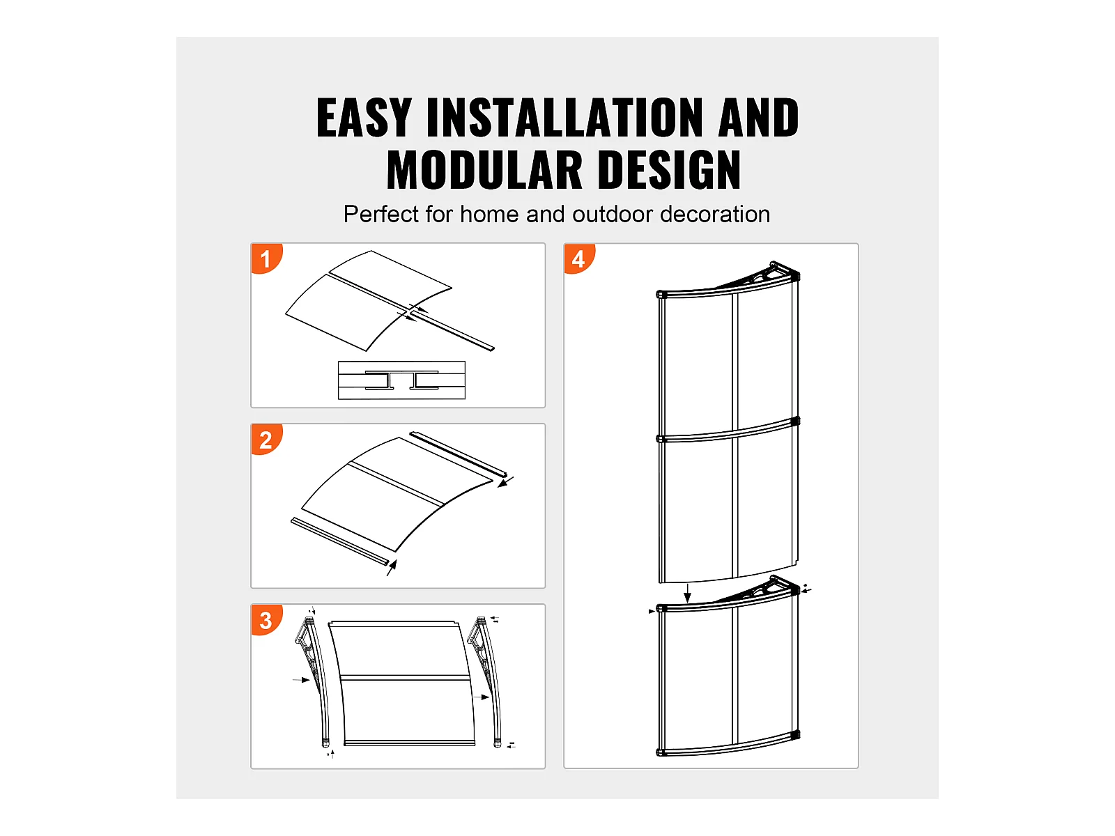 Pensilina Per Porta D'ingresso SucceBuy Pensilina Per Porta E Finestra In Policarbonato 203,2 x 101,6 cm, Pensilina Di Protezione UV Contro La Pioggia