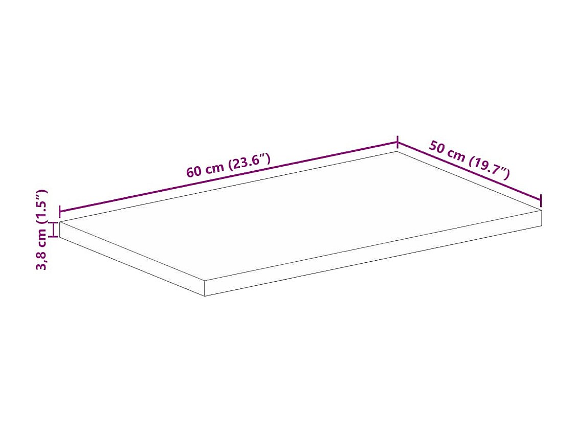 Piano per Tavolo 40x30x3,8 cm Rettangolare Legno Massello Mango