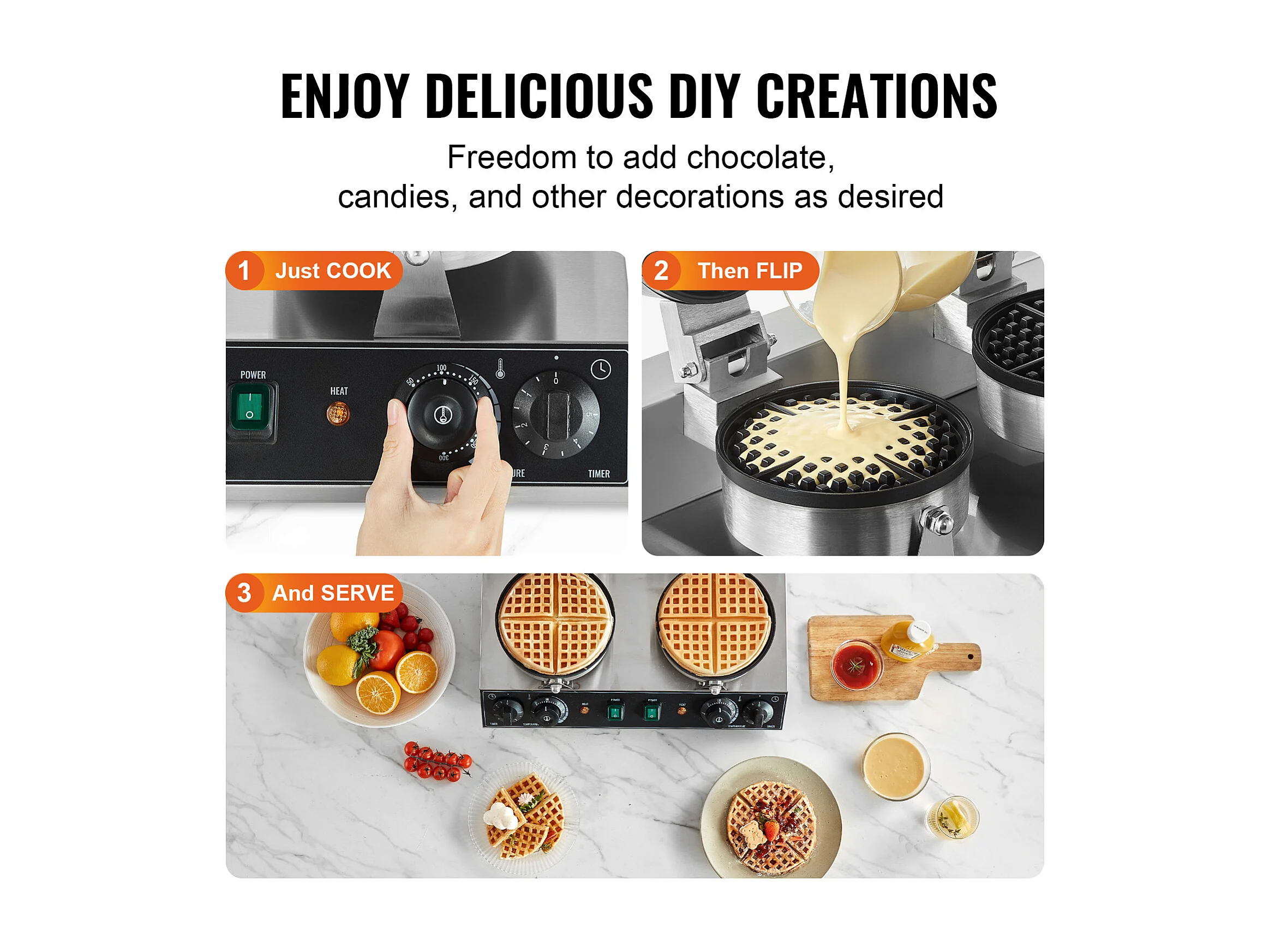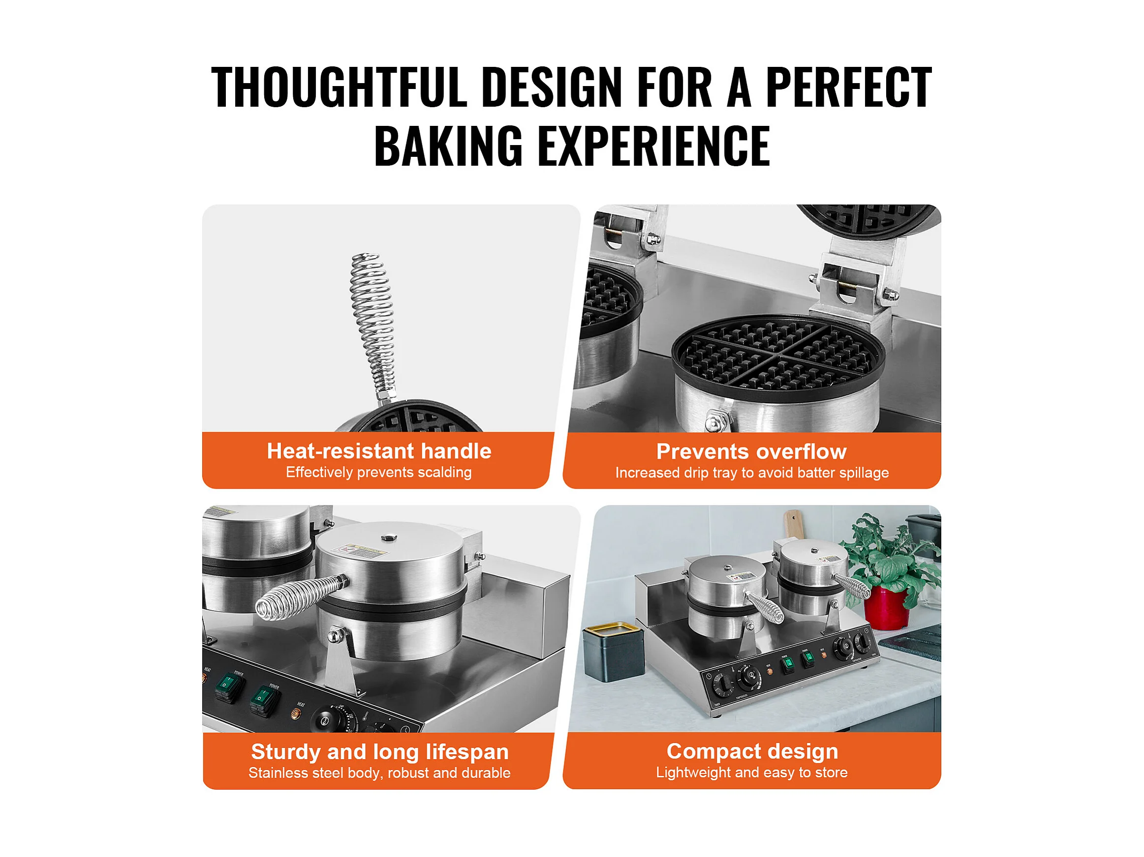 Piastra per Waffle SucceBuy Piastra per Waffle Rotonda a Doppia Testa Commerciale 2460W Antiaderente
