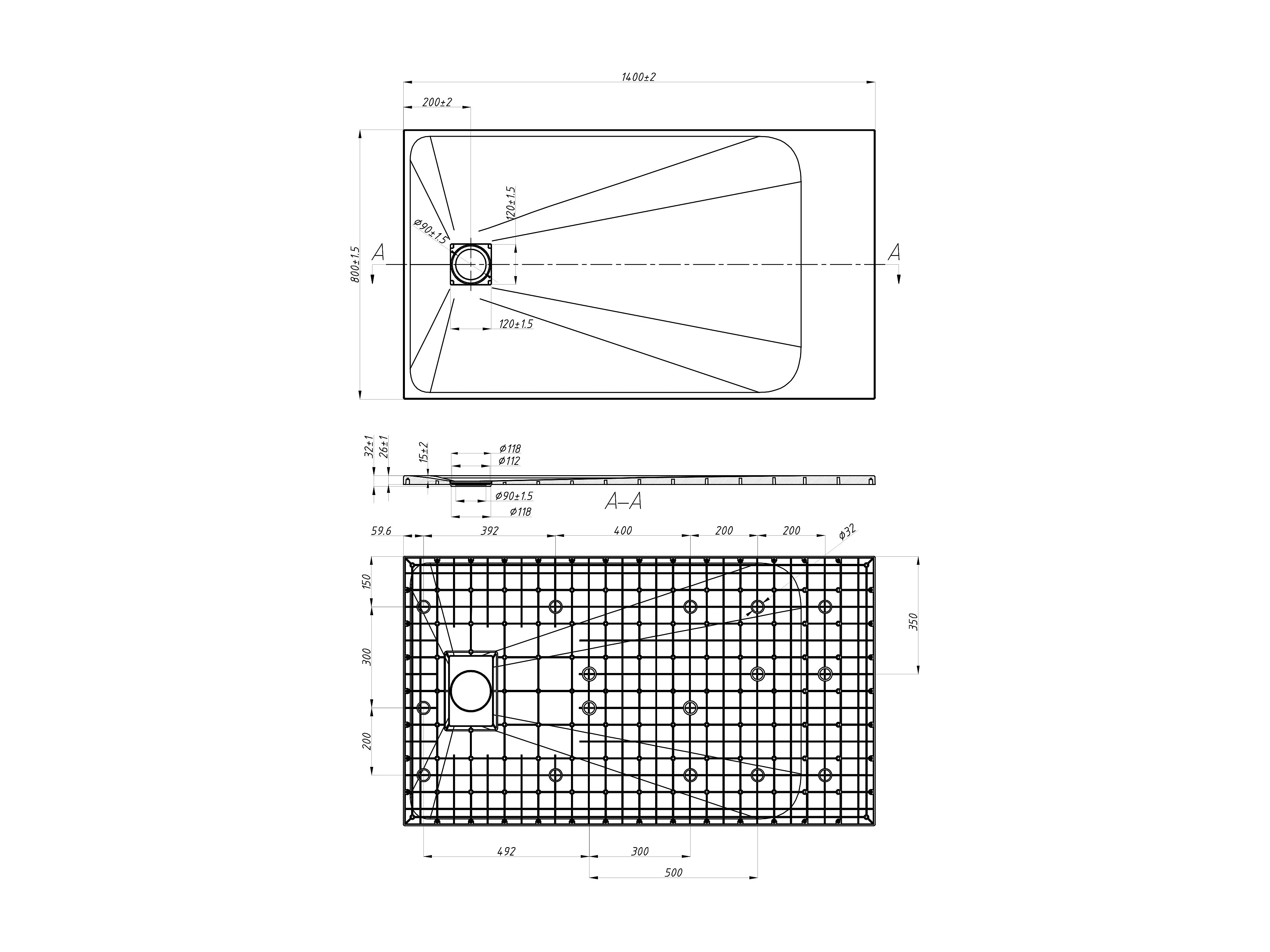 Piatto per doccia da posare o da a incasso 140 x 80 cm in Resina con sifone Bianco - MIRNOSA