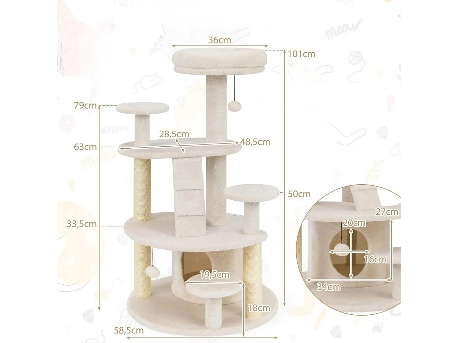 Piccolo tiragraffi con grotta per gatti, palla e scala Albero di legno per gatti Tiragraffi per gatti Beige