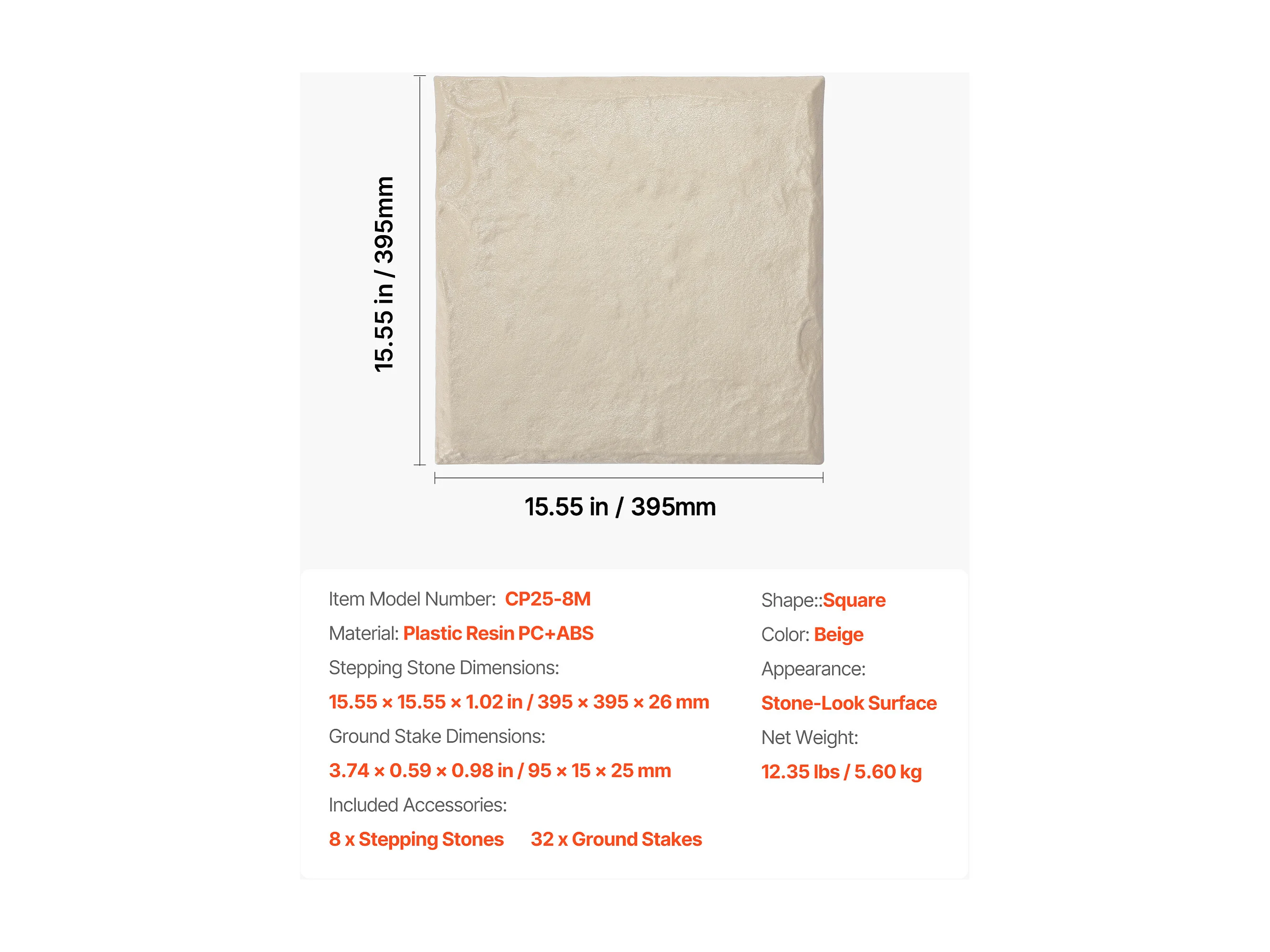 Pietre da Passo Giardino SucceBuy, 8 PCS, Lastre da Passo Giardino, 39,5x39,5 cm, Aspetto Pietra Naturale in Resina PC ABS, Piastrelle per Prato, Terrazza
