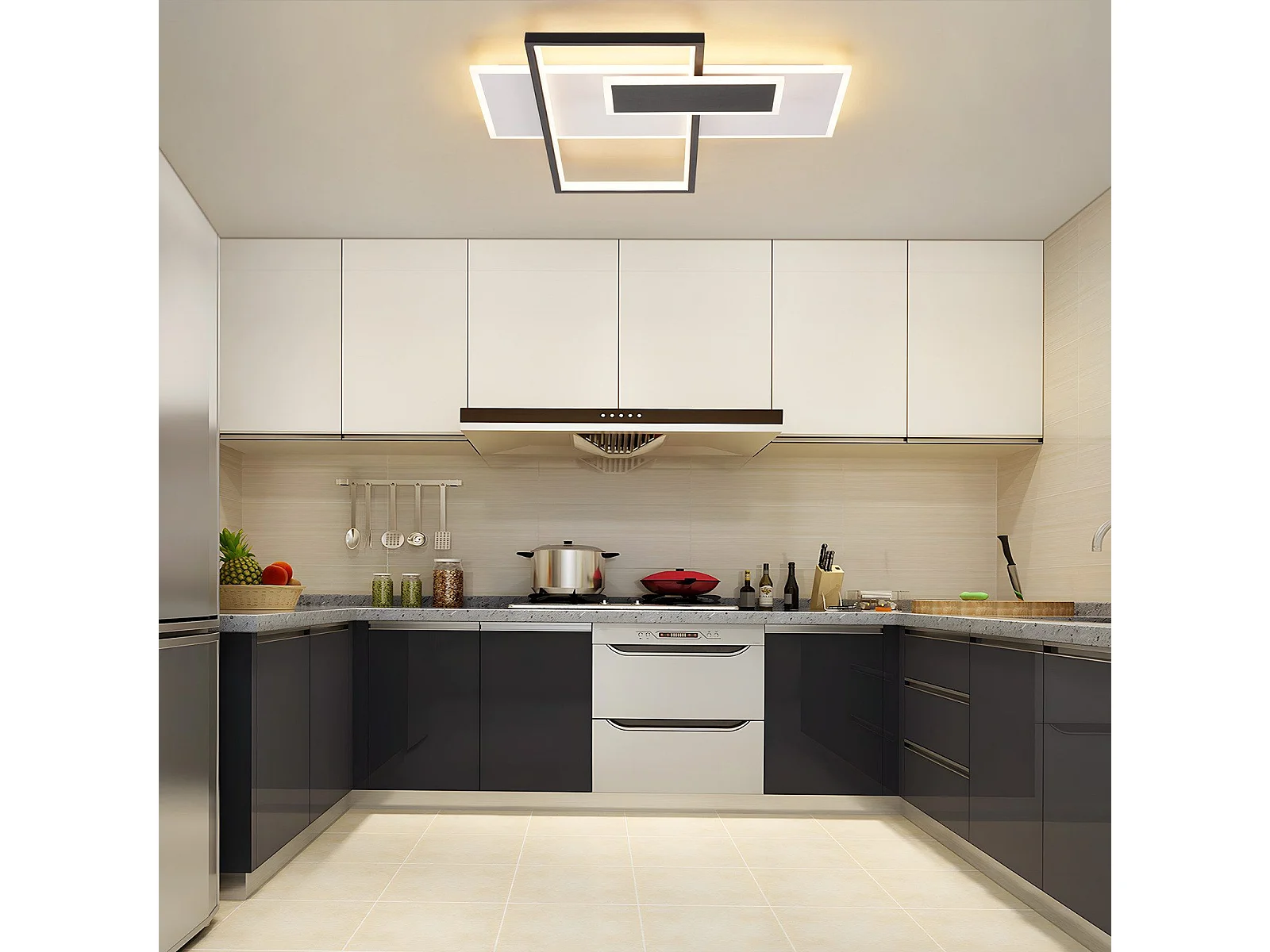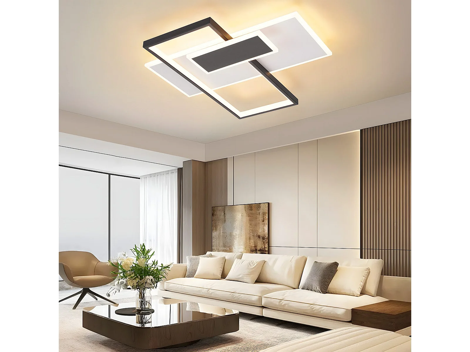 Plafoniera a LED dimmerabile NETTLIFE da 62W per soggiorno con 2 faretti, nera, con telecomando, design moderno in acrilico.