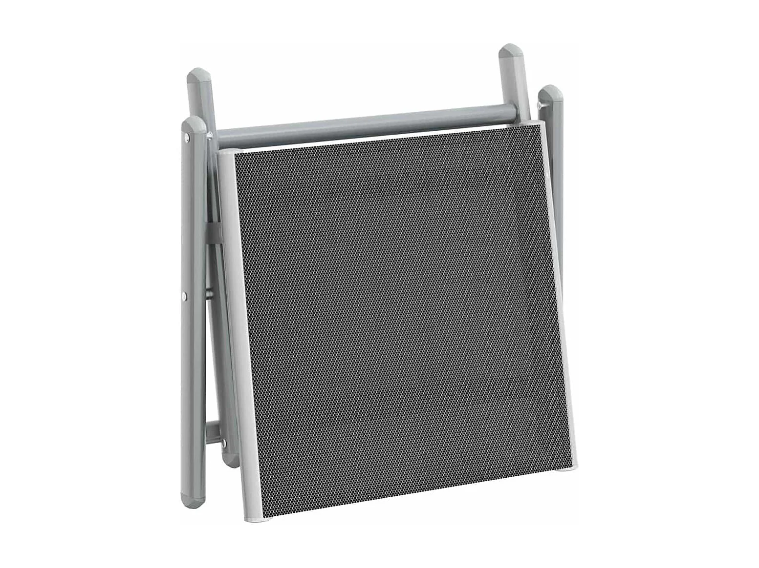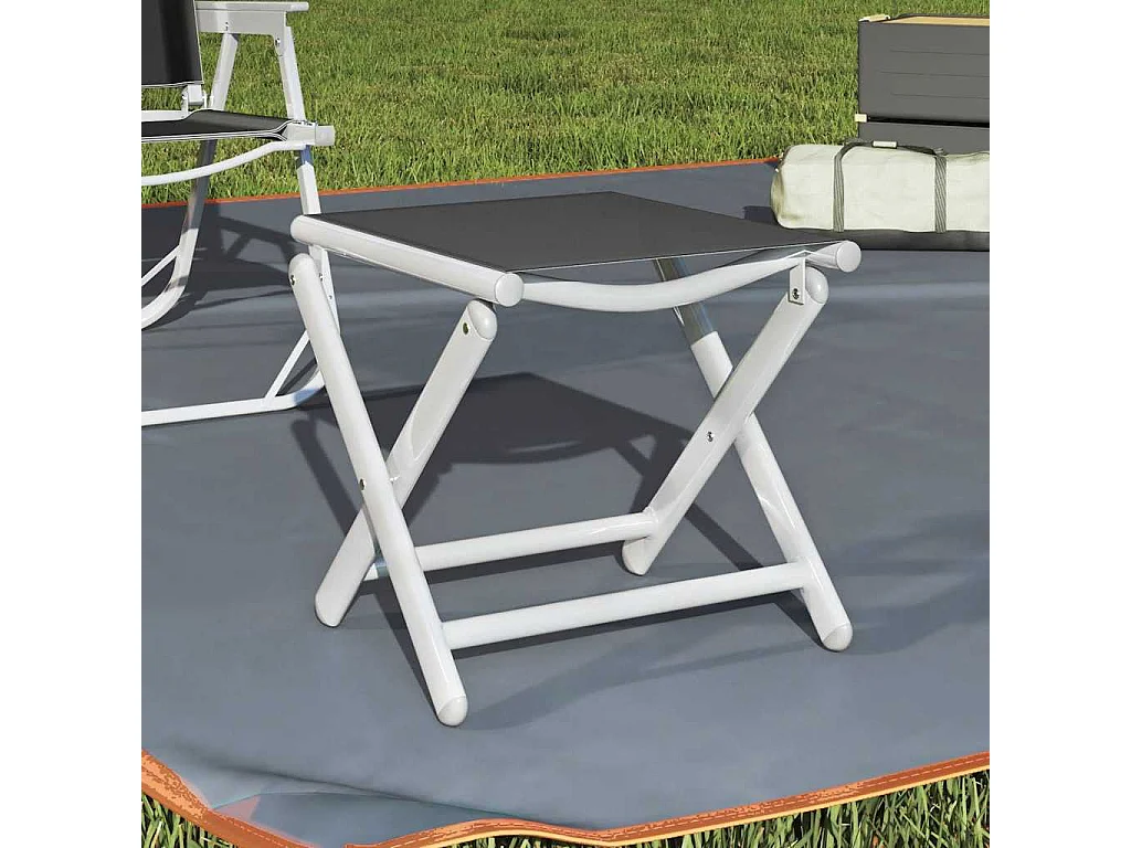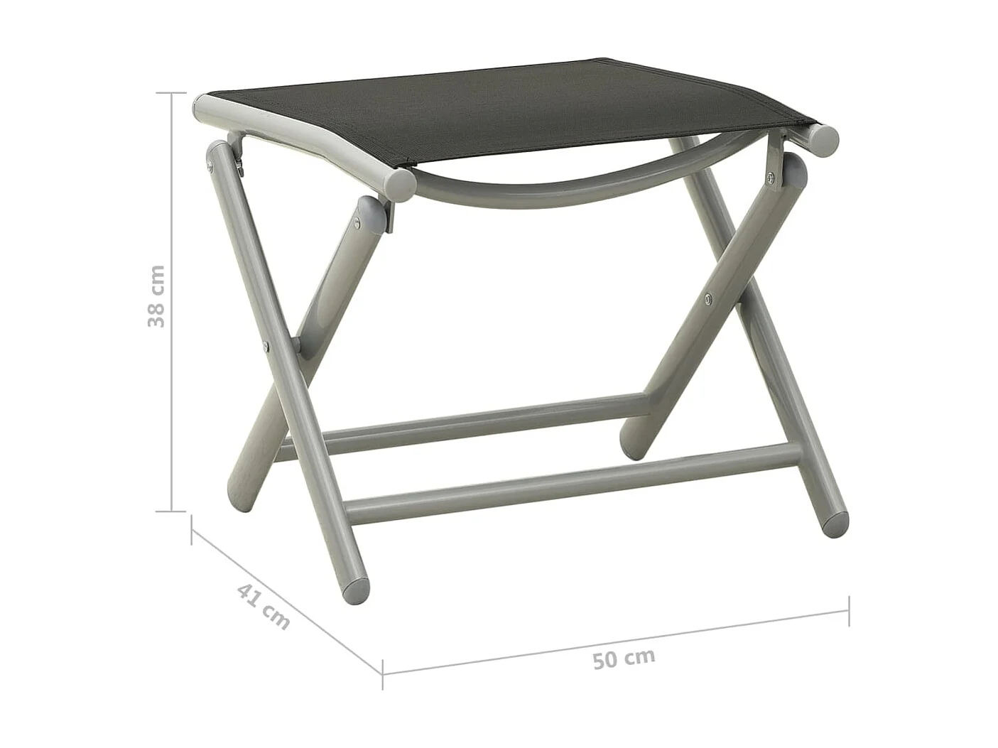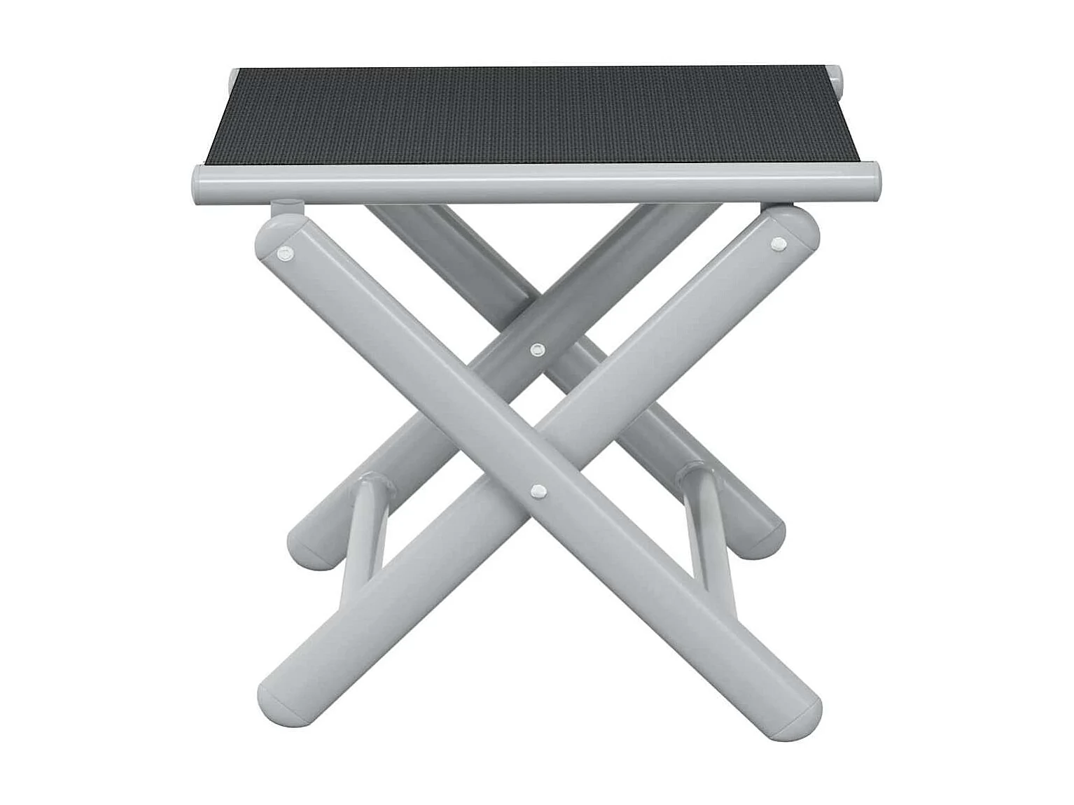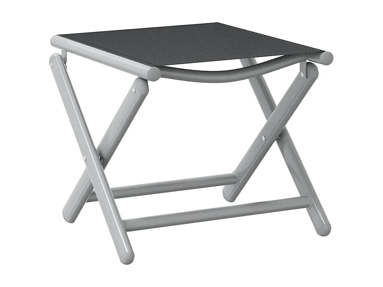 Poggiapiedi Pieghevole Nero e Argento in Textilene e Alluminio