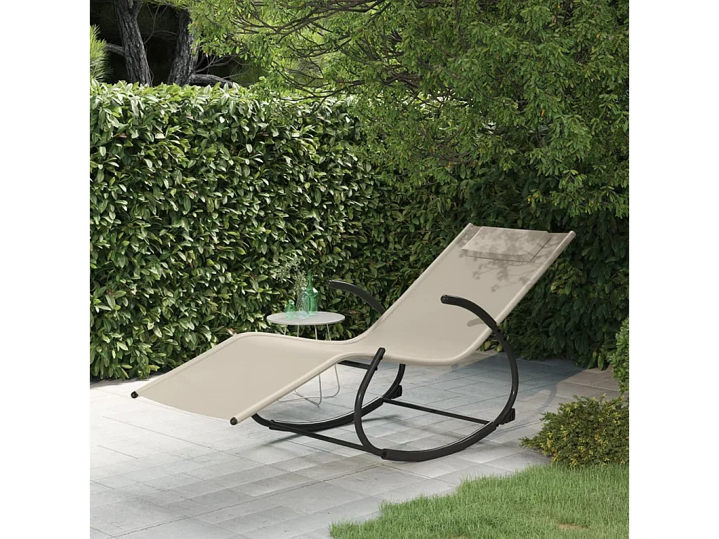 Poltrona a dondolo Crema Acciaio e Textilene