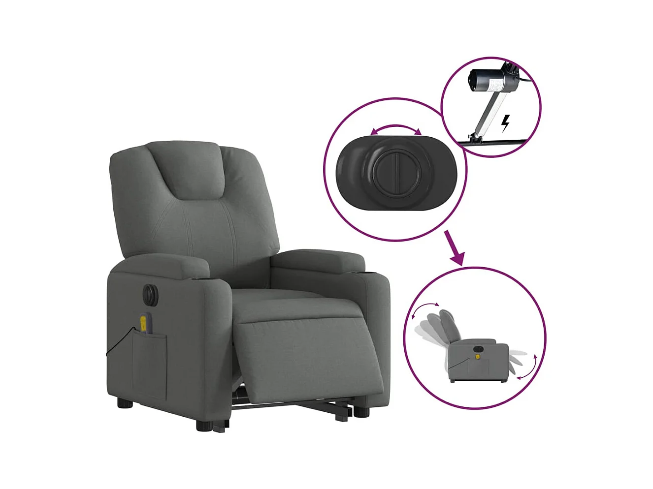 Poltrona Alzapersona Massaggi Elettrica Grigio Scuro Tessuto