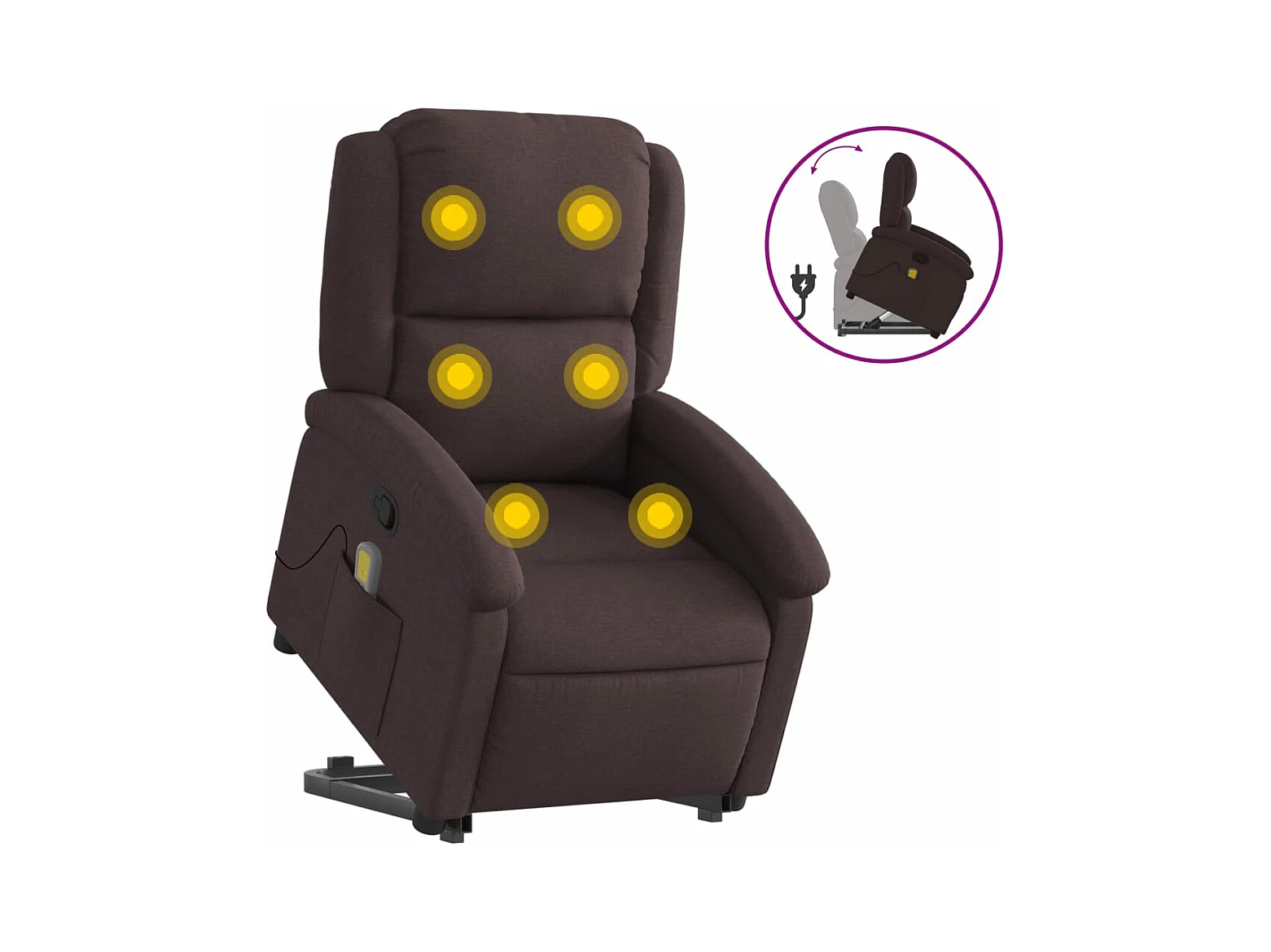 Poltrona Alzapersona Massaggio Elettrica Marrone Scuro Tessuto
