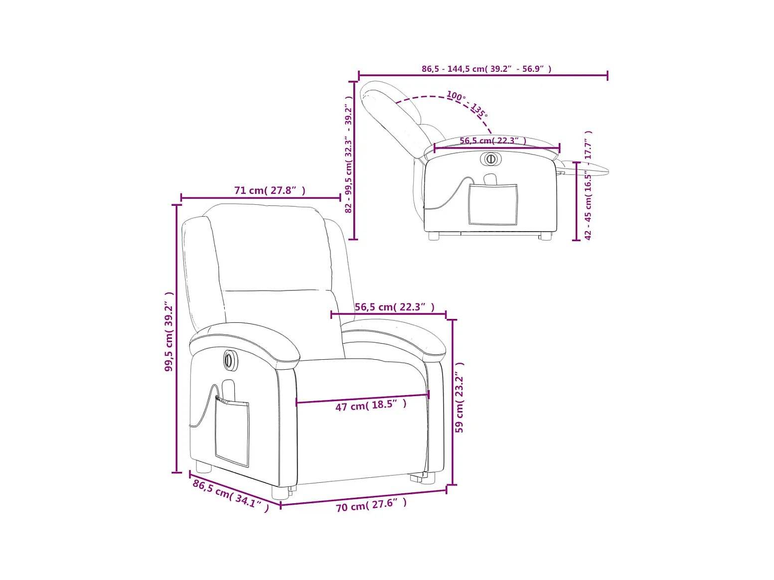 Poltrona Massaggiante Reclinabile Rosso Vino in Velluto