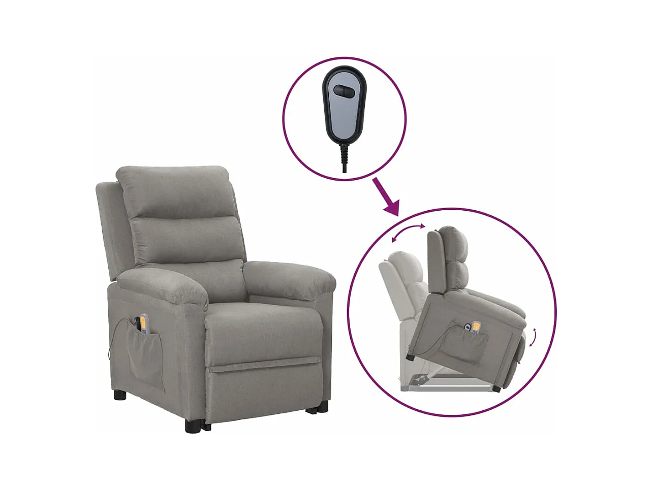 Poltrona Alzapersona Massaggiante Grigio Chiaro Tessuto