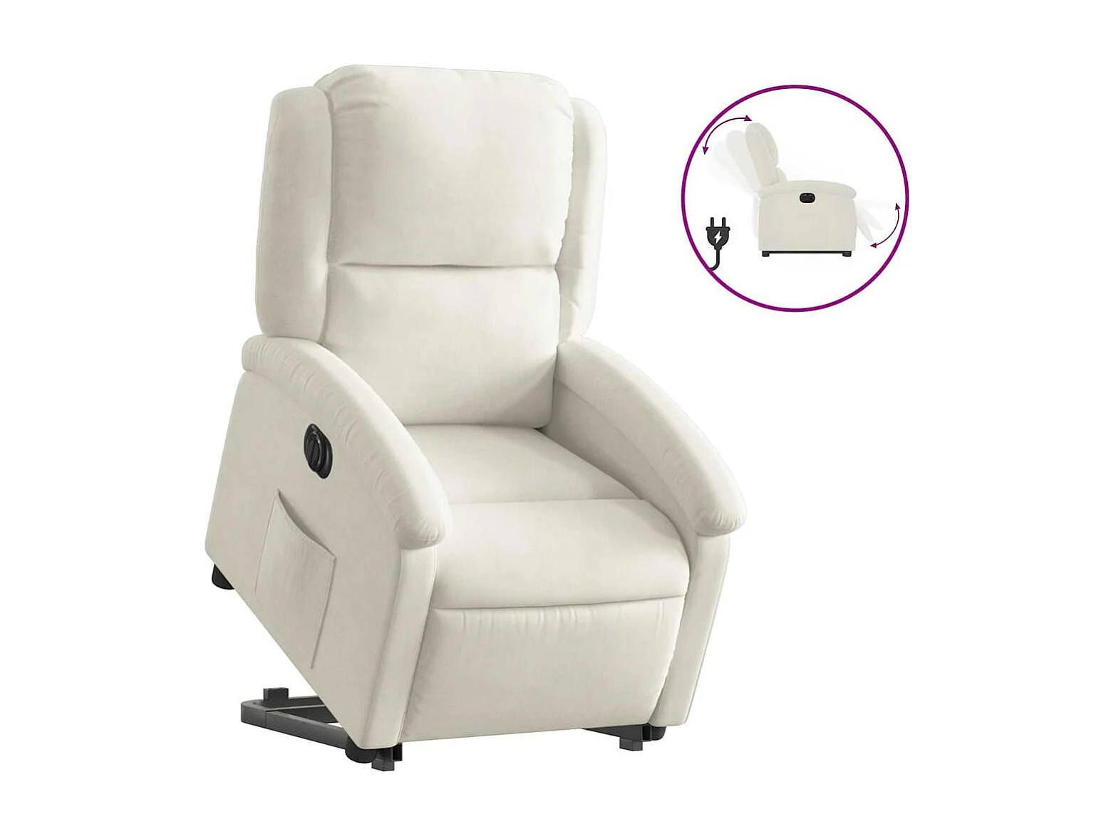Poltrona Alzapersona Reclinabile Elettrica Crema in Velluto