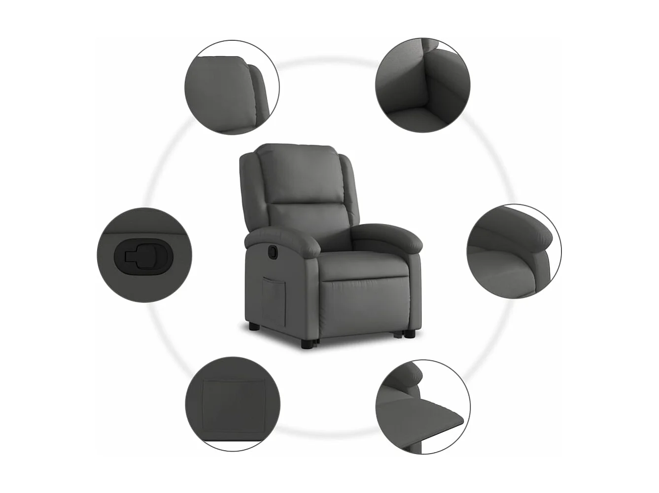 Poltrona Alzapersona Reclinabile Grigia in Vera Pelle