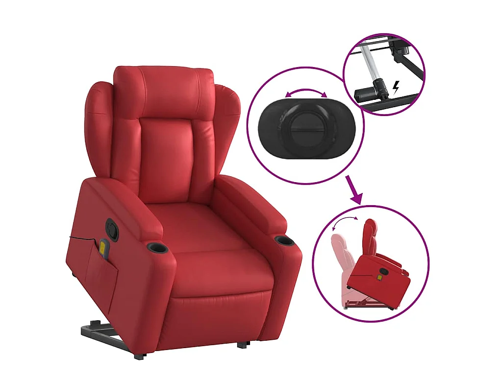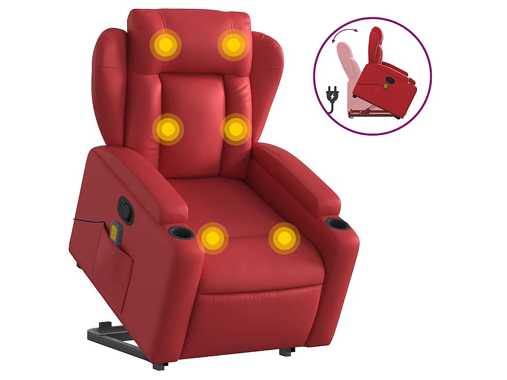 Poltrona Alzapersona Reclinabile Massaggio Rosso in Similpelle
