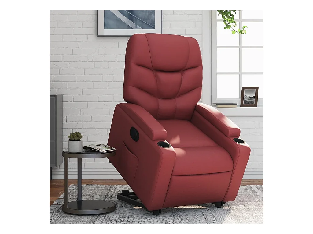 Poltrona Alzapersona Reclinabile Rosso Vino in Similpelle
