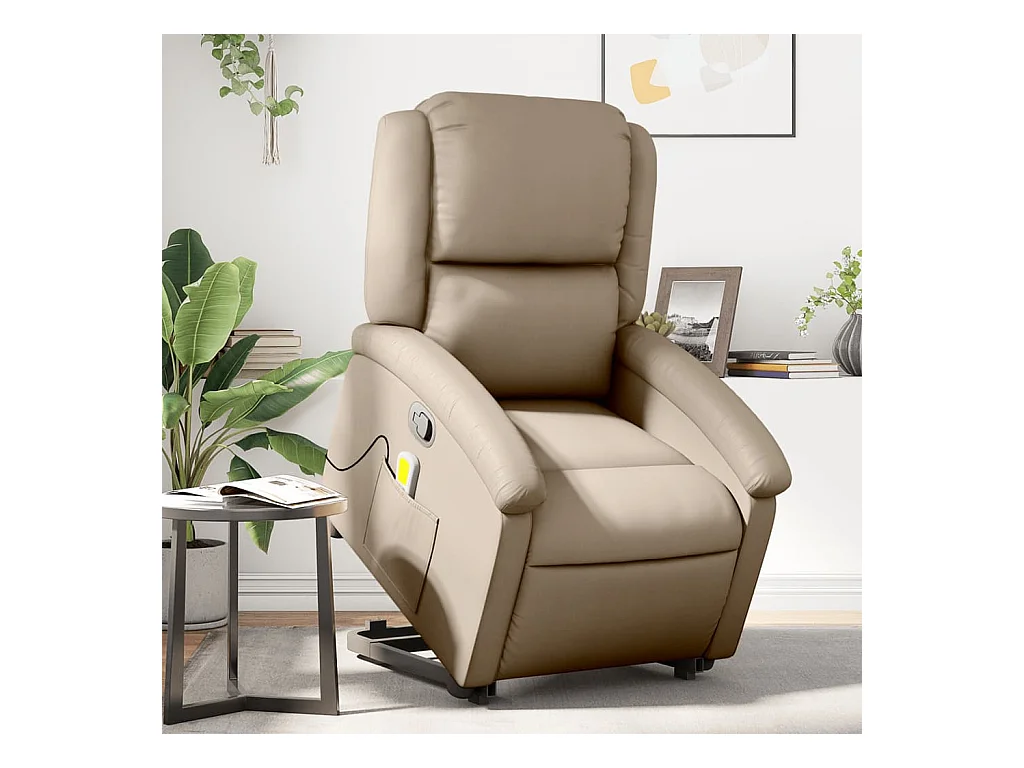 Poltrona Alzapersone Massaggi Reclinabile Cappuccino Similpelle