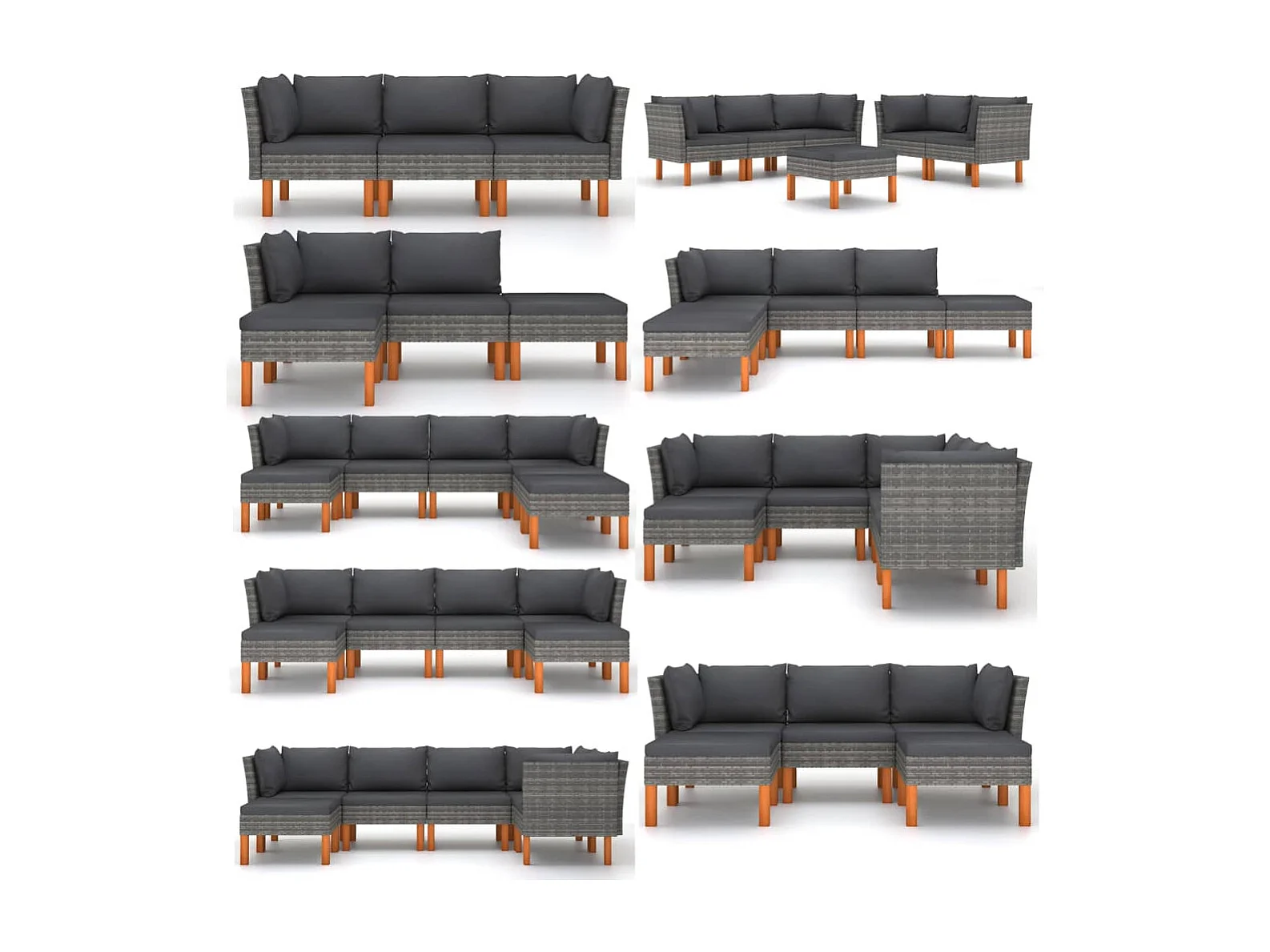 Divani Centrali 3 pz Polyrattan e Legno Massello di Eucalipto