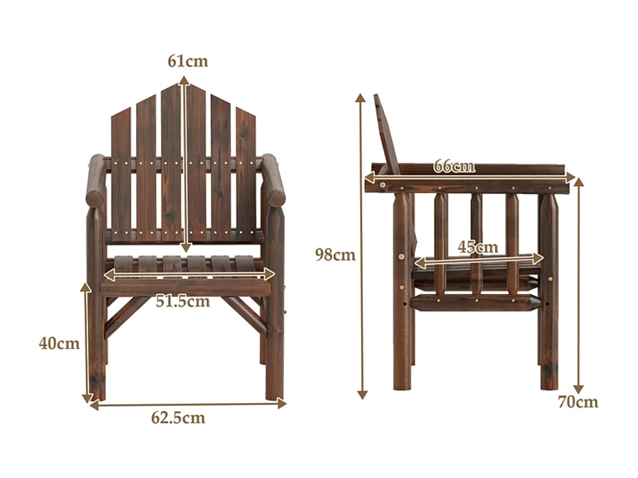 Poltrona da esterno in legno Sedia da pranzo da giardino in legno con braccioli e schienale alto inclinato Marrone