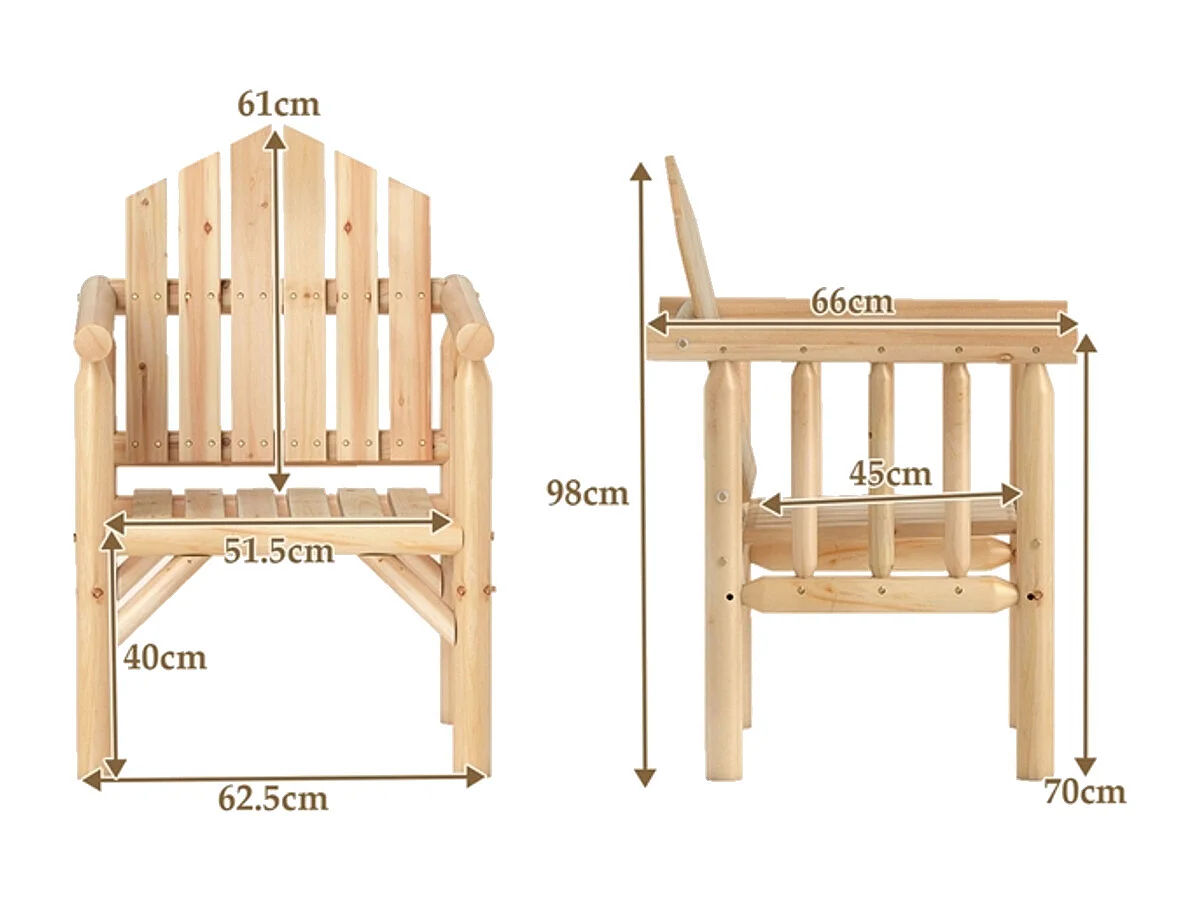Sedia da giardino Adirondack in legno massello di abete