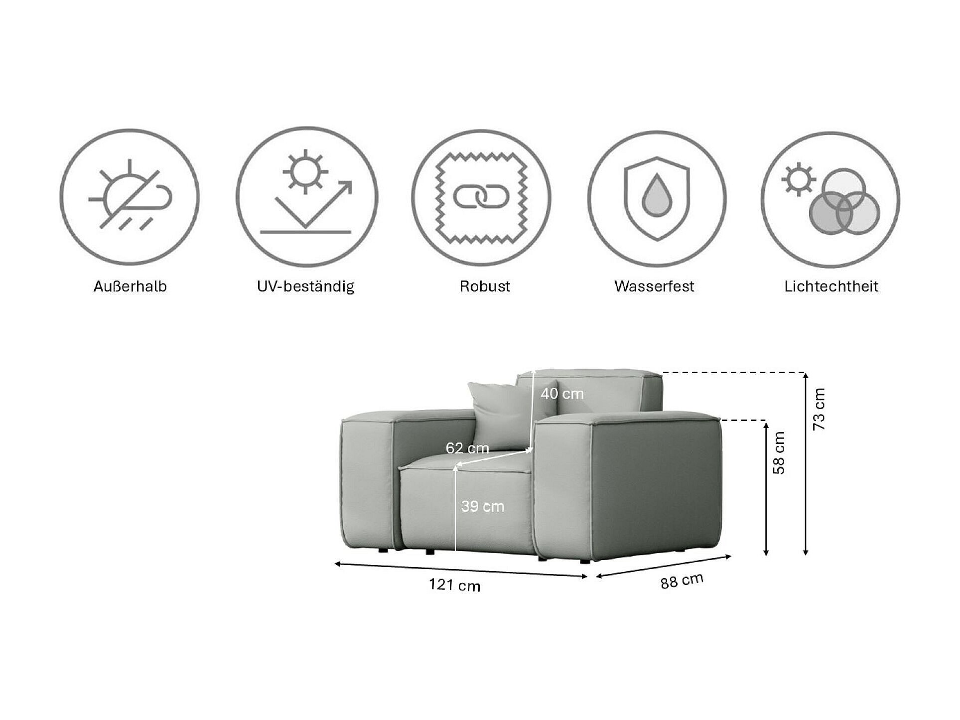 Poltrona da giardino MALIBU, tessuto ODYSSEY, grigio chiaro