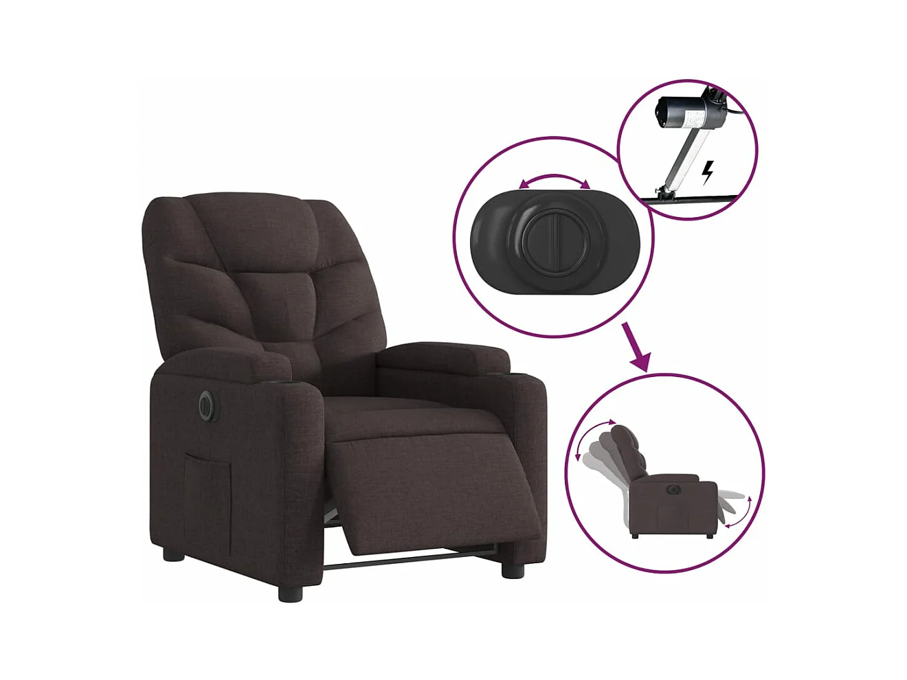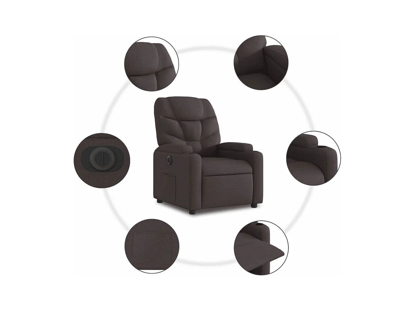 Poltrona Elettrica Reclinabile Marrone Scuro in Tessuto