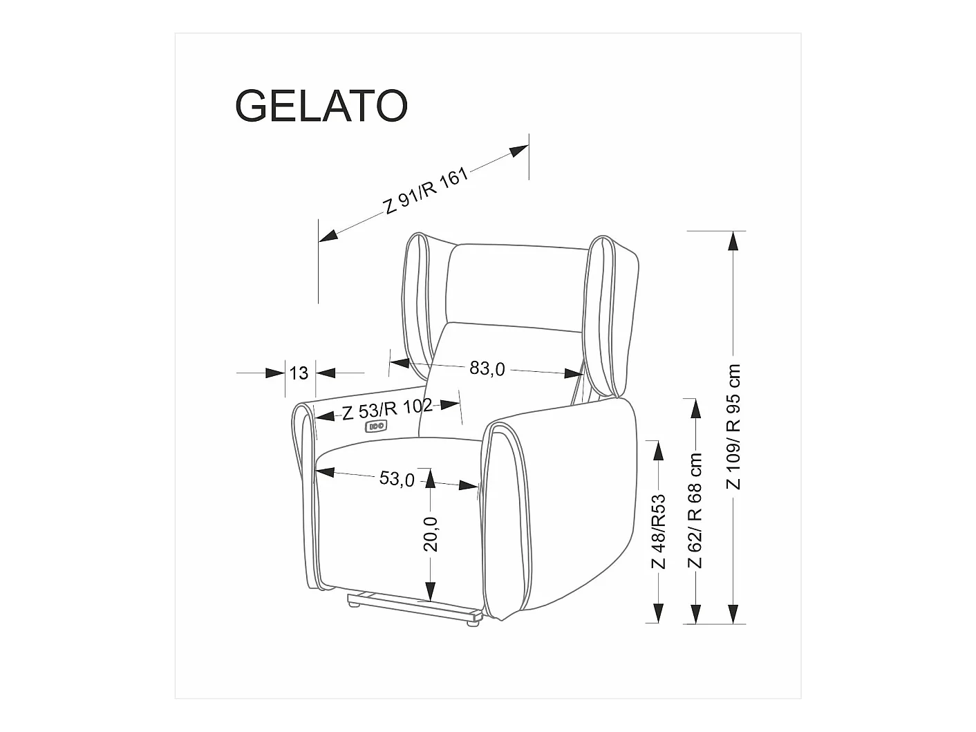 Poltrona Gelato/rivestimento in tessuto/funzione relax/USB/grigio