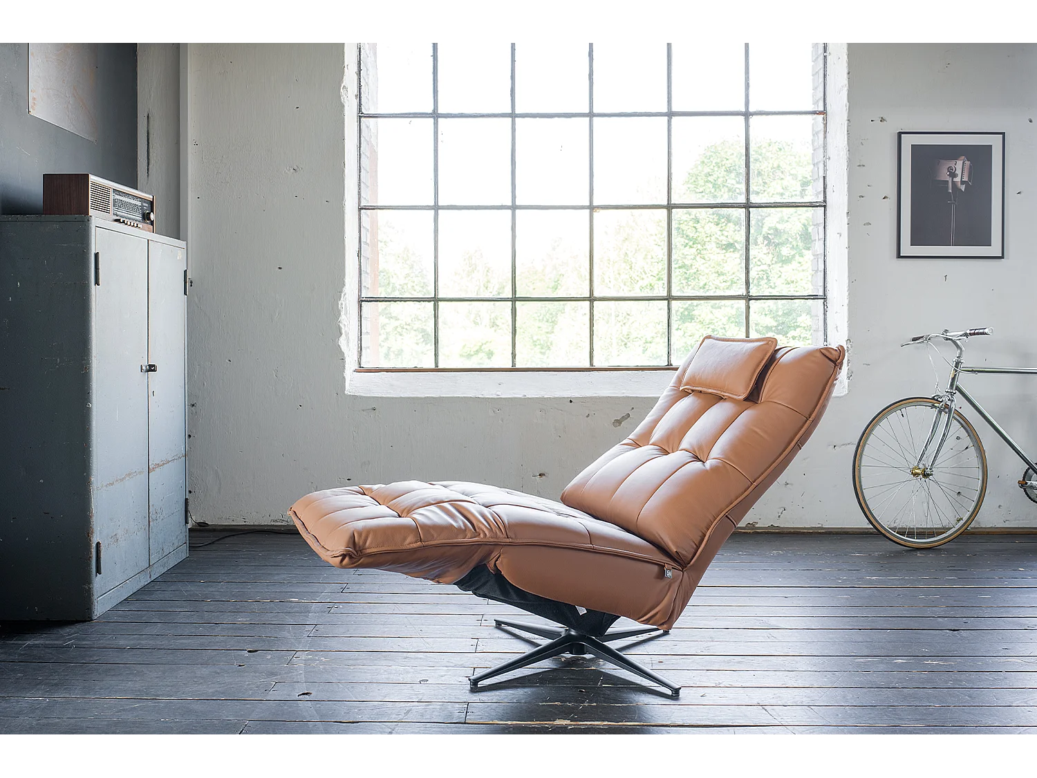 Poltrona Rilassante Pieghevole Marrone in Vera Pelle