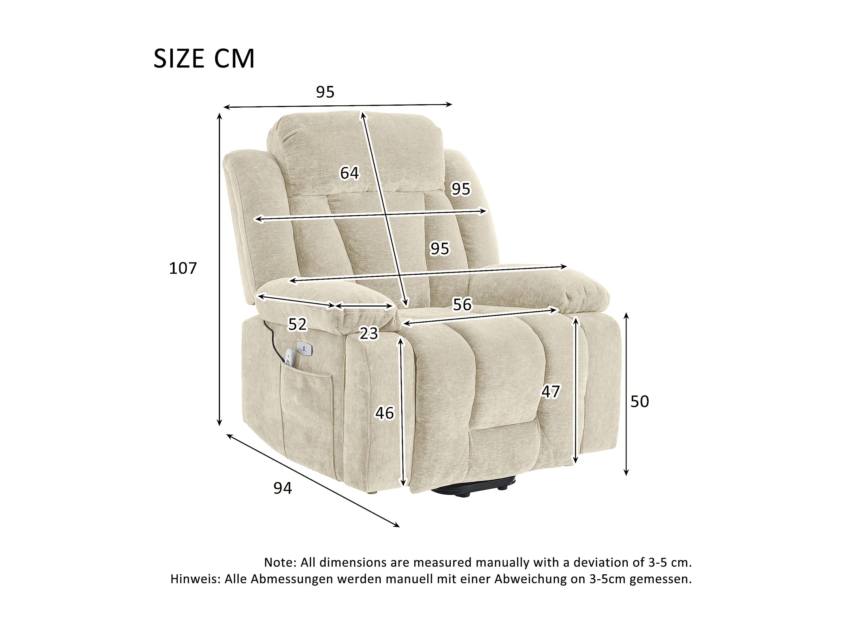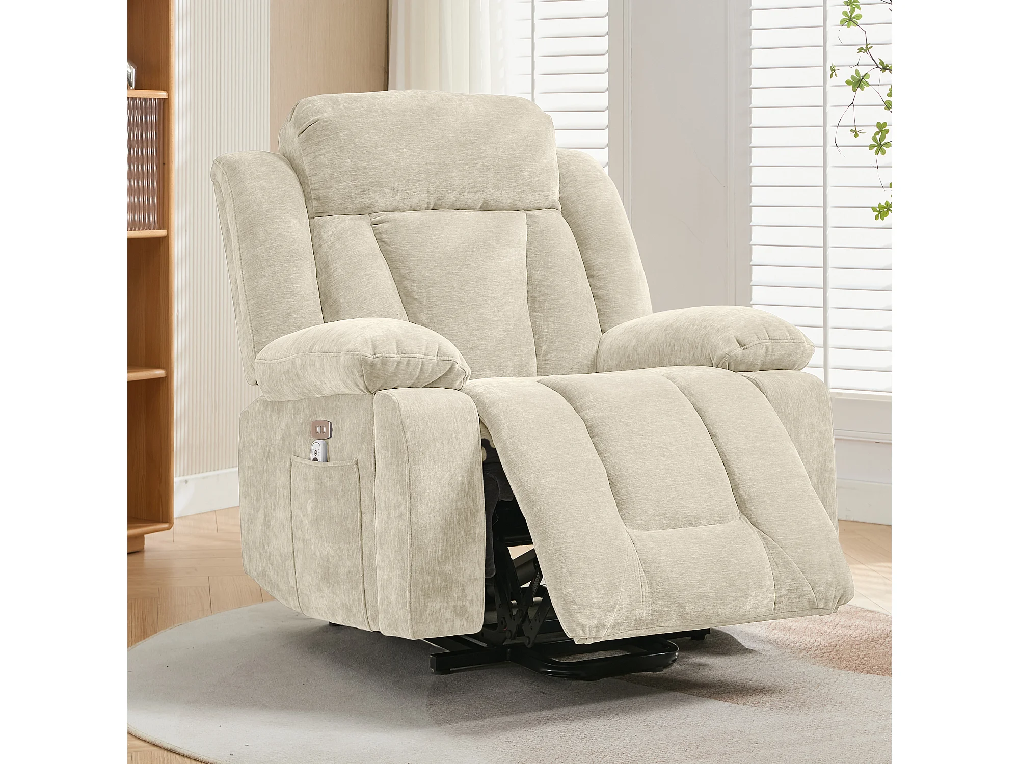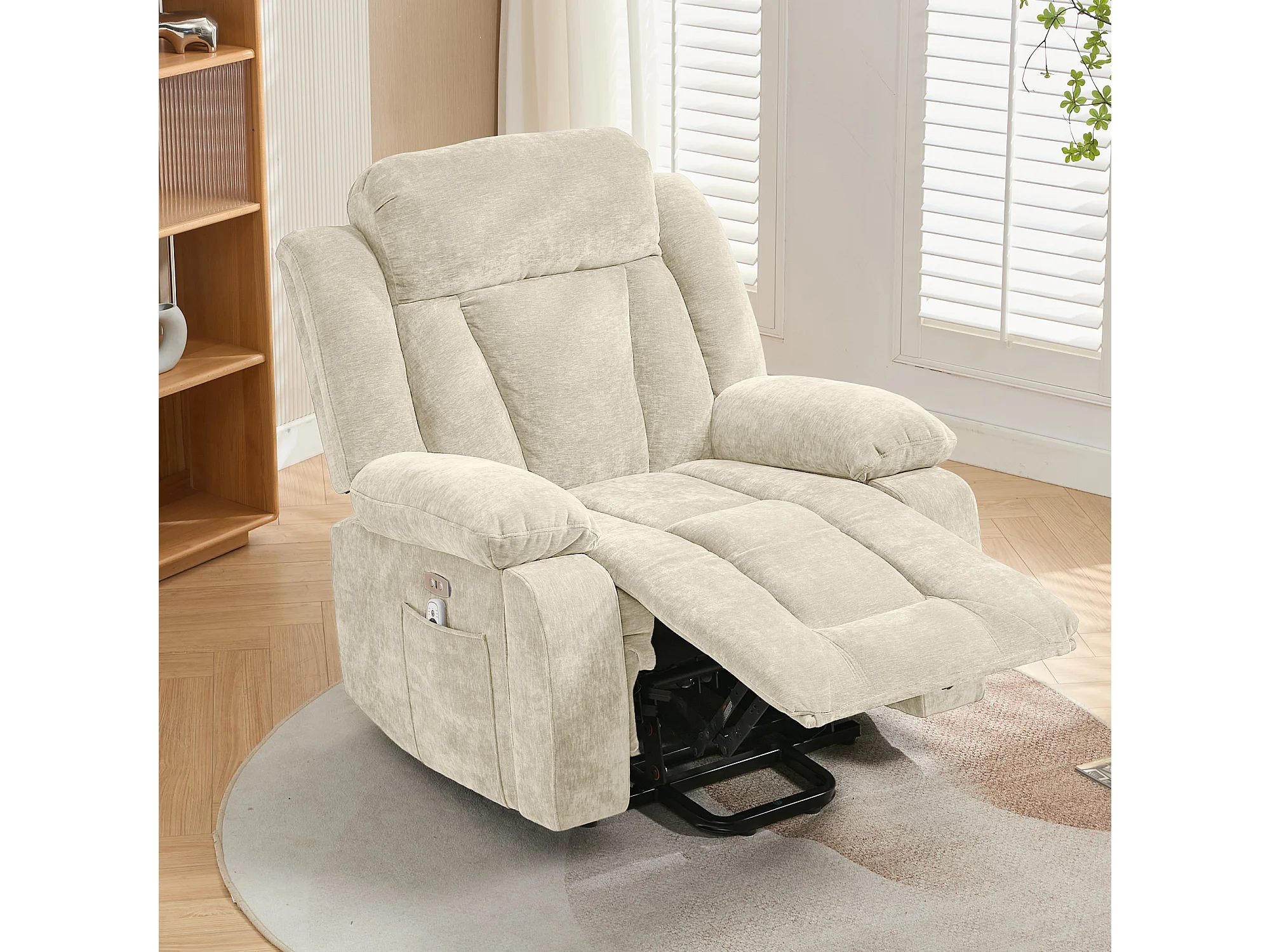 Poltrona massaggio elettrica regolabile 95x94x107cm - Funzioni massaggio e riscaldamento - Tasche laterali - Portabicchieri e porte USB - Beige