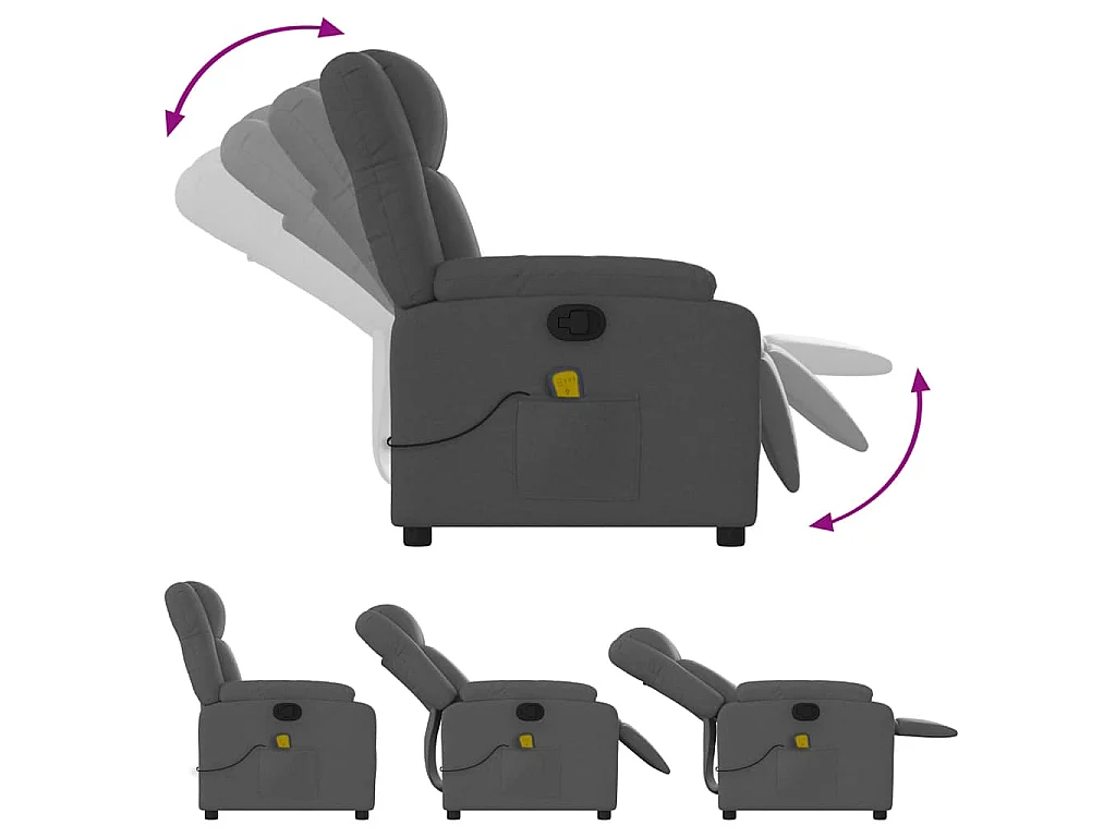 Poltrona Massaggiante Reclinabile Grigio Scuro in Tessuto