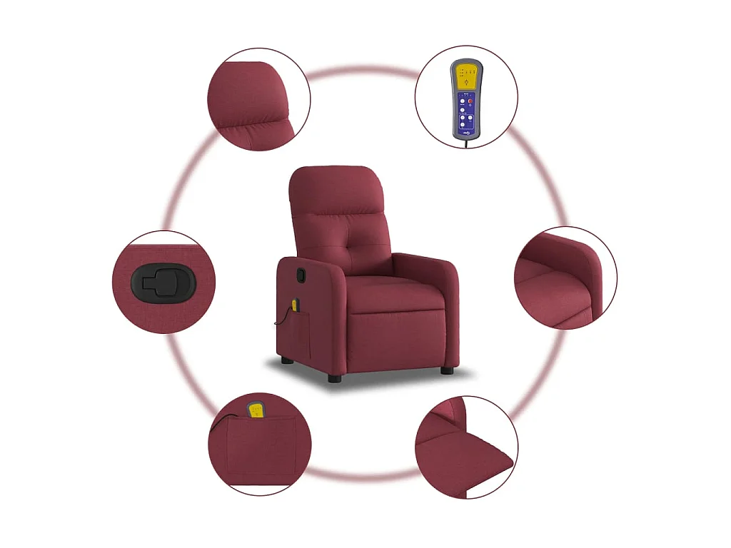 Poltrona Massaggiante Reclinabile Rosso Vino in Tessuto