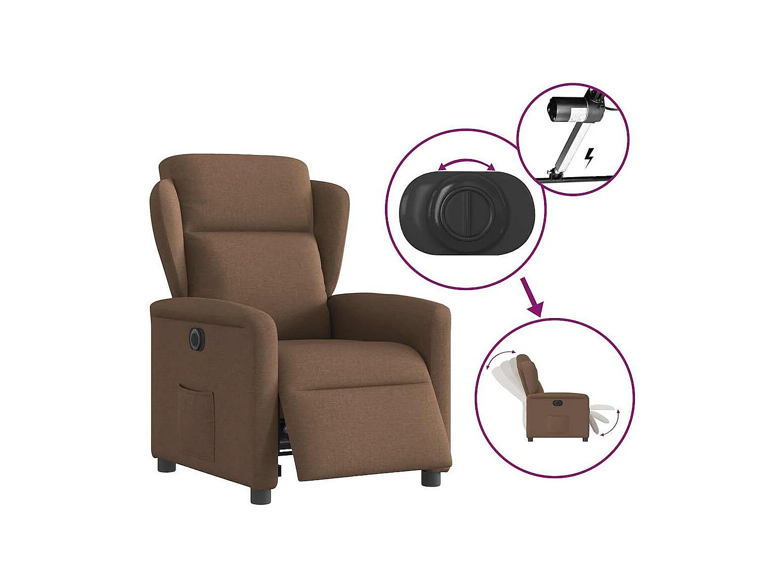 Poltrona reclinabile elettrica in tessuto marrone scuro