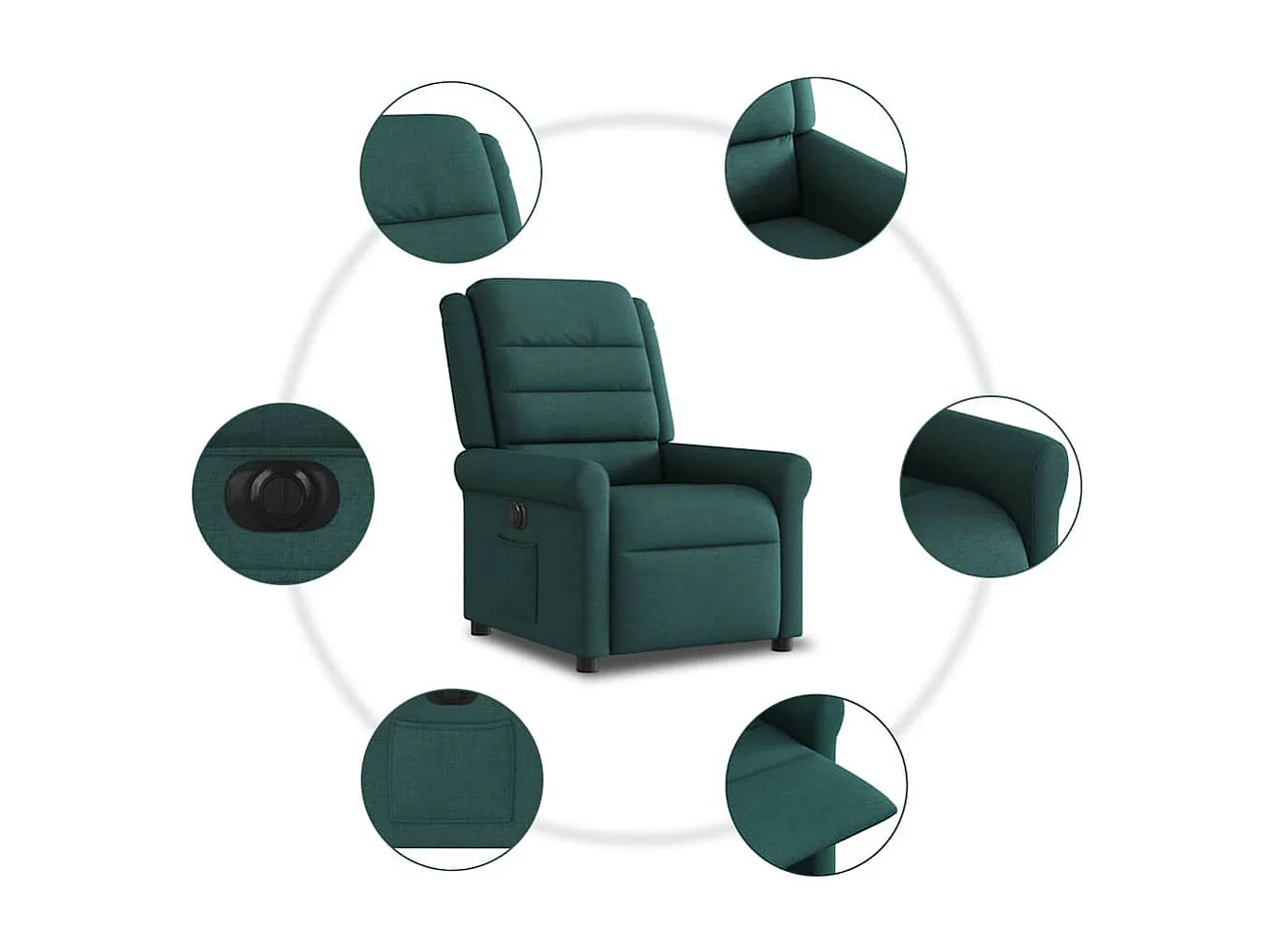 Poltrona reclinabile elettrica in tessuto verde scuro