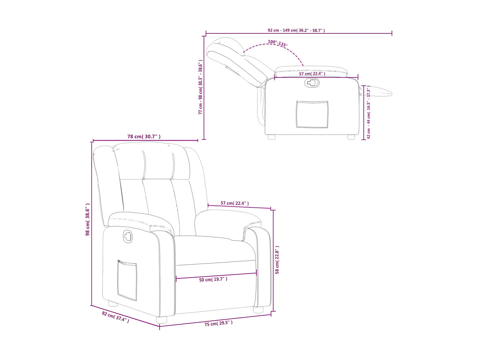 Poltrona Reclinabile in Tessuto Grigio Scuro