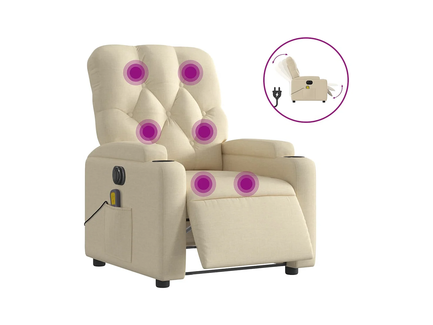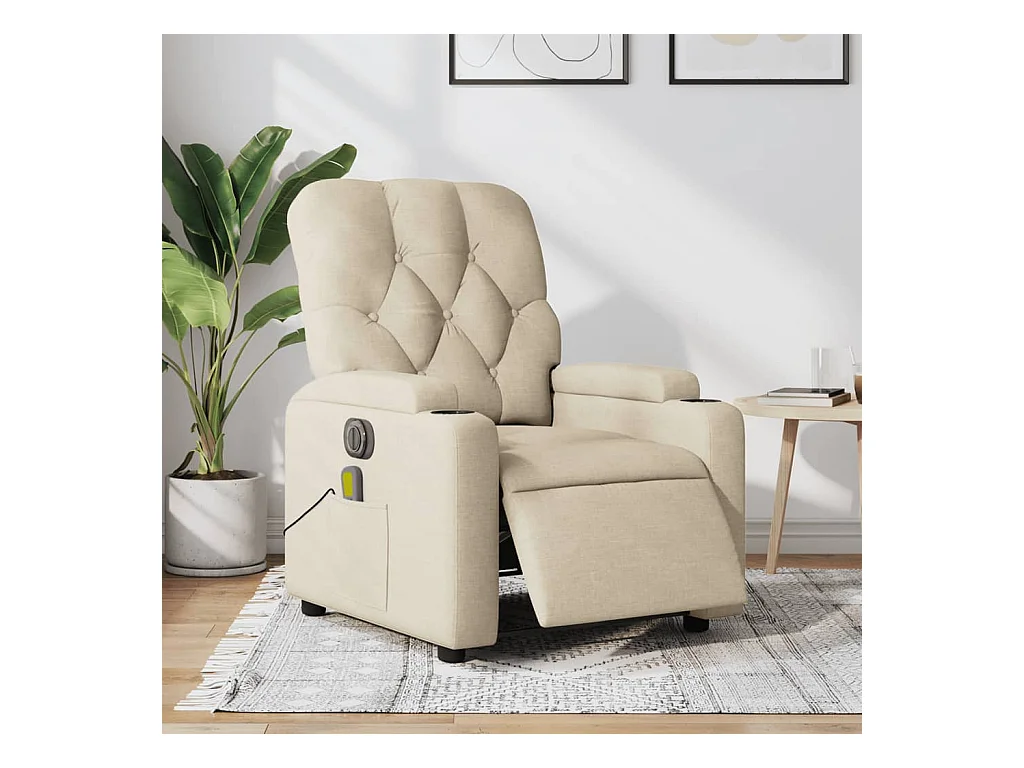 Poltrona reclinabile massaggiante elettrica in tessuto crema