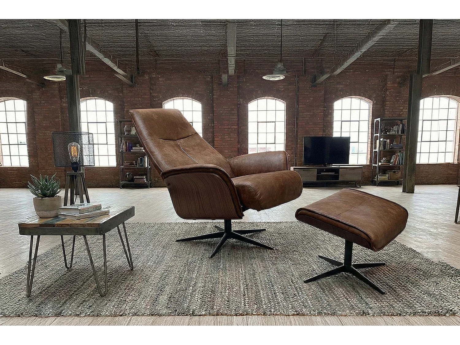 Poltrona relax - marrone Tessuto in fibra di pelle - FERREIRA