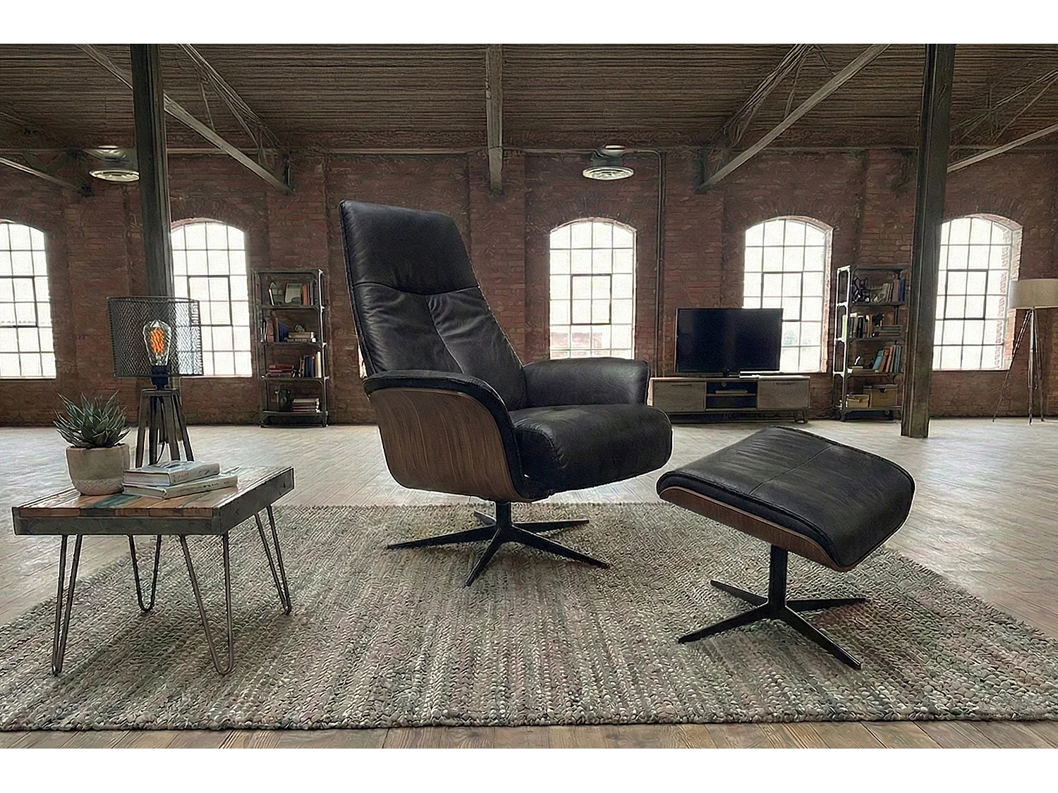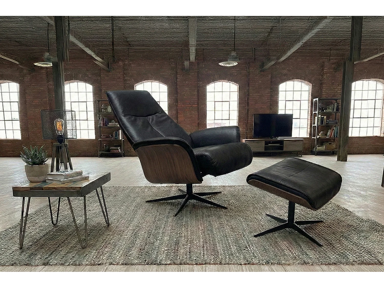 Poltrona relax - Nero Tessuto in fibra di pelle - FERREIRA