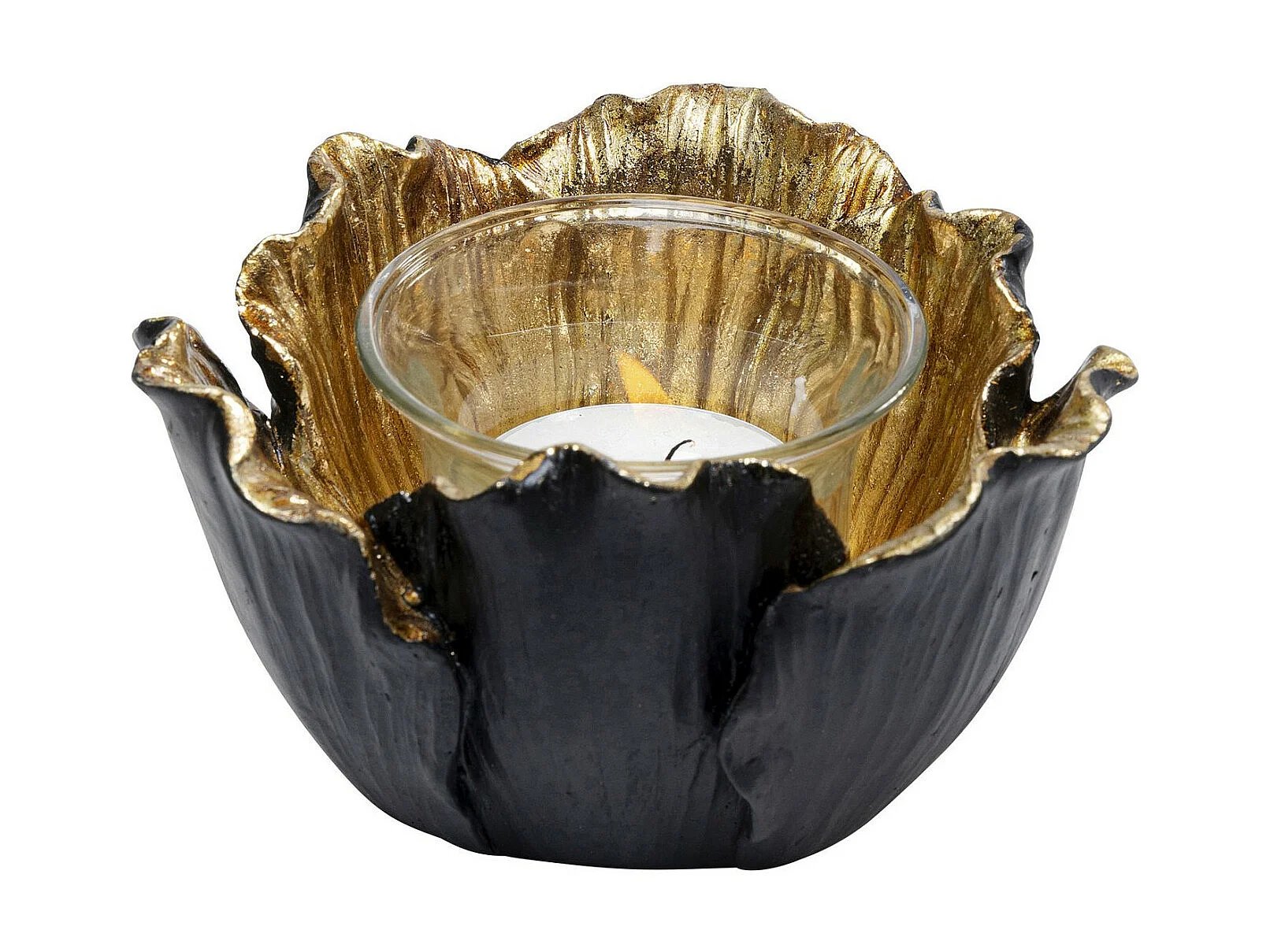 Porta luce del tè Flower Bloom nero-oro Ø10cm