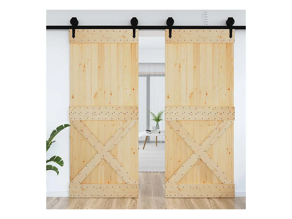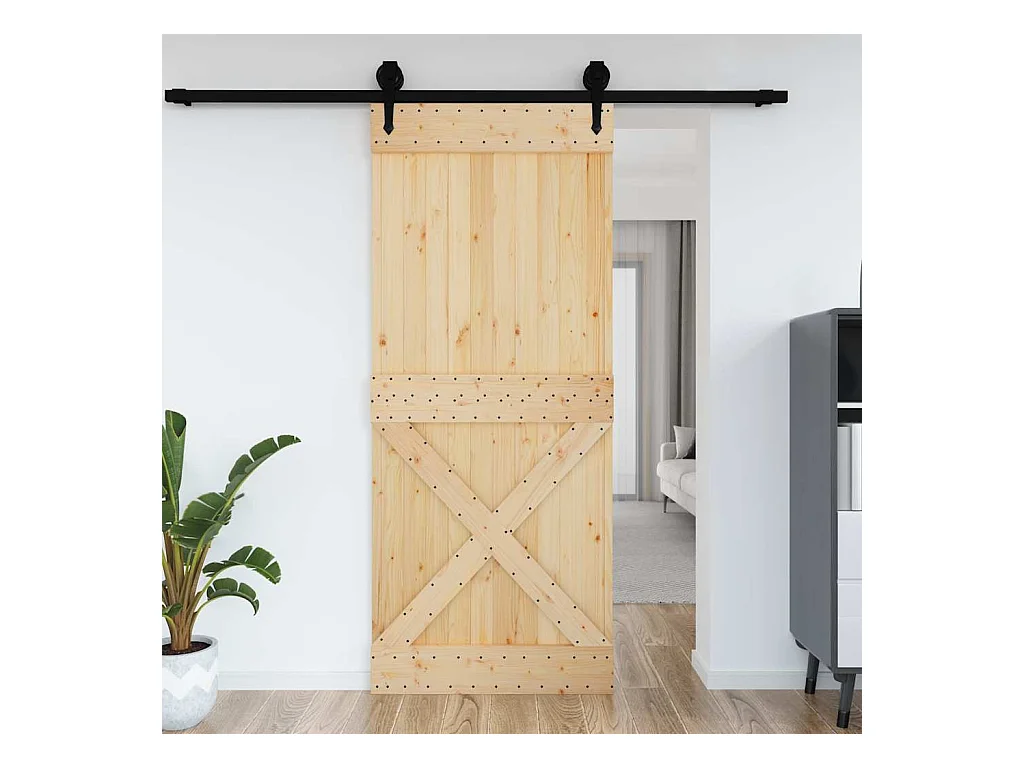 Kit porta scorrevole e ferramenta 95x210 cm pino massello