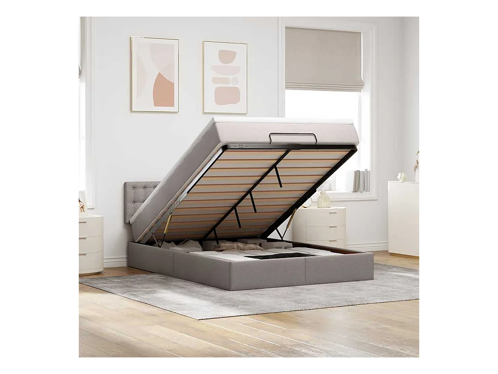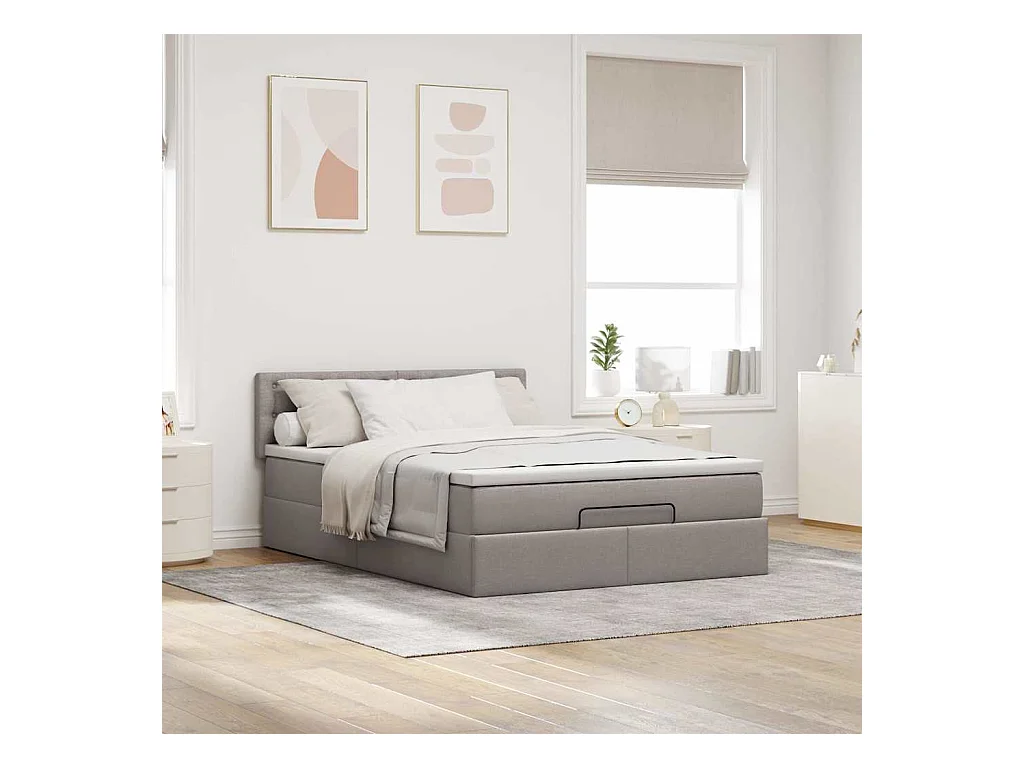 Struttura Letto Pouf con Materasso Tortora 140x200cm in Tessuto