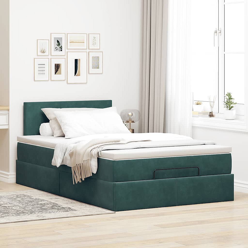 Giroletto a Molle con Materasso Verde Scuro 120x190 cm Velluto