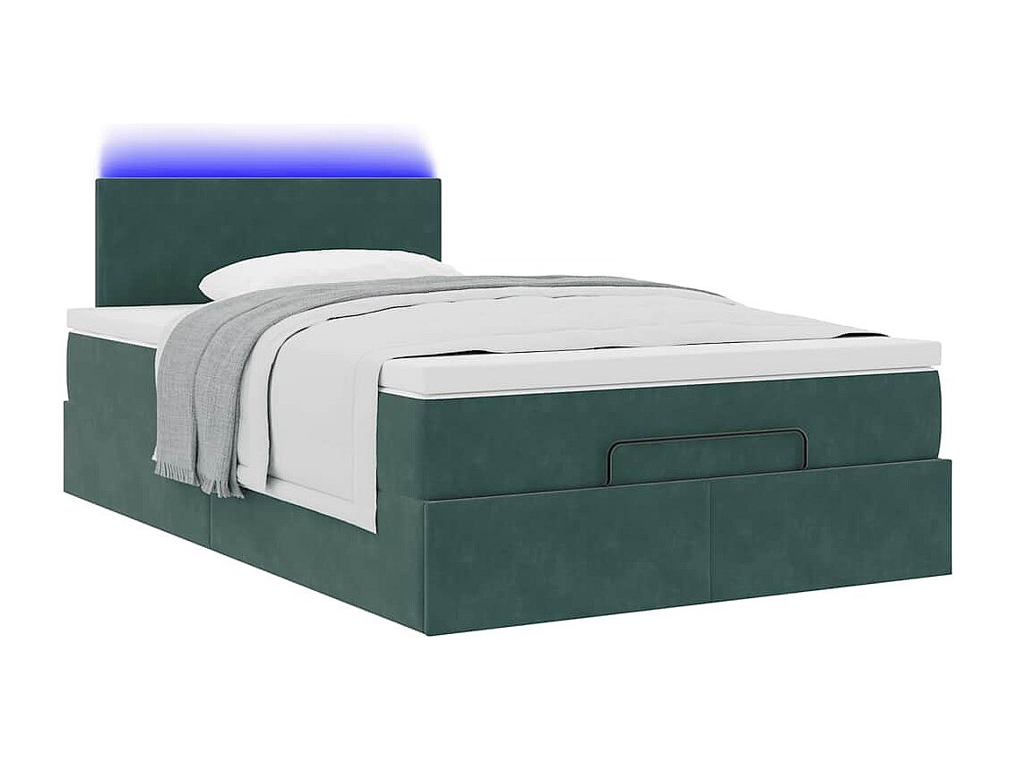 Pouf Letto con Materasso e LED Verde Scuro 120x190cm in Velluto