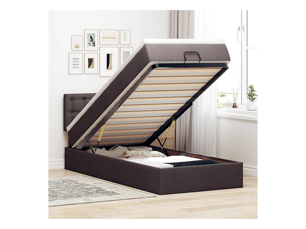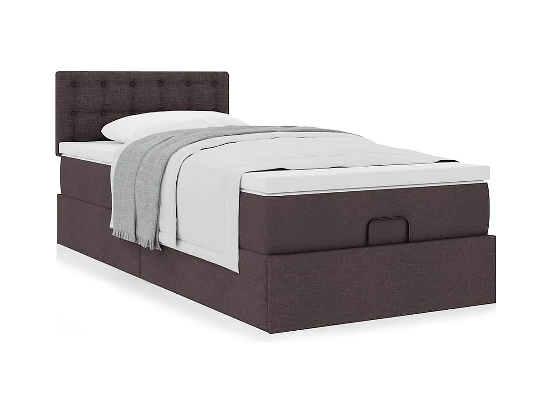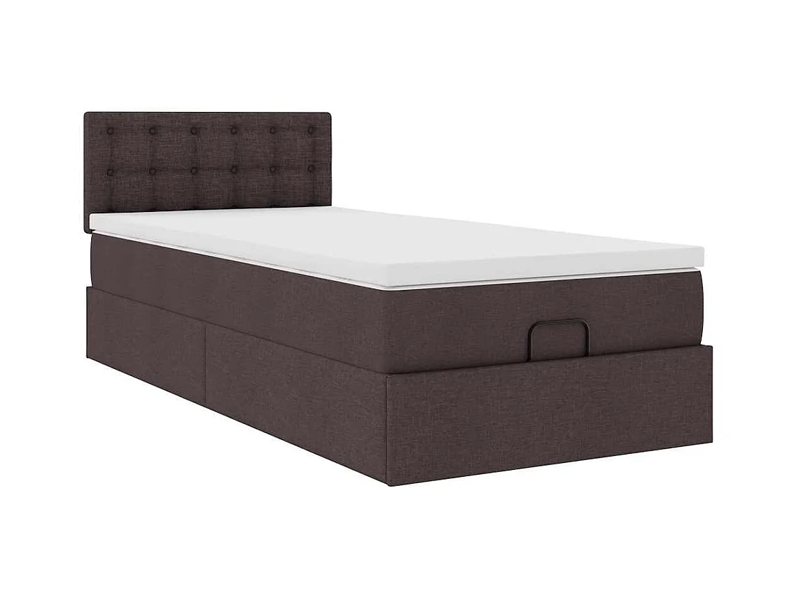Pouf Letto con Materasso Marrone Scuro 100x200 cm in Tessuto