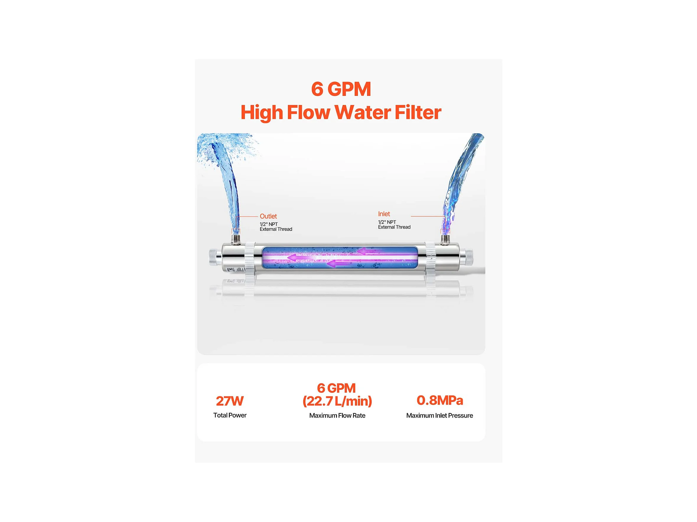 Purificatore d'Acqua UV SucceBuy, 22,7 L/min Per Acqua Potabile Pulita