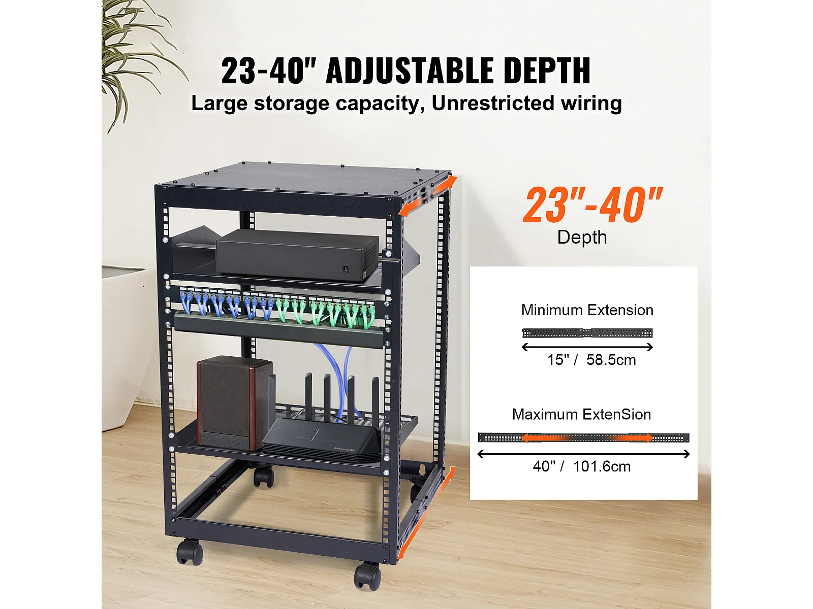 Rack Server SucceBuy 15U 4 - Rack Server a Montanti, 58cm - 102cm Regolabile, Chassis Rete