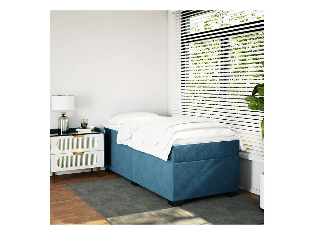 Letto a molle con materasso Blu scuro 90 x 200 cm Velluto