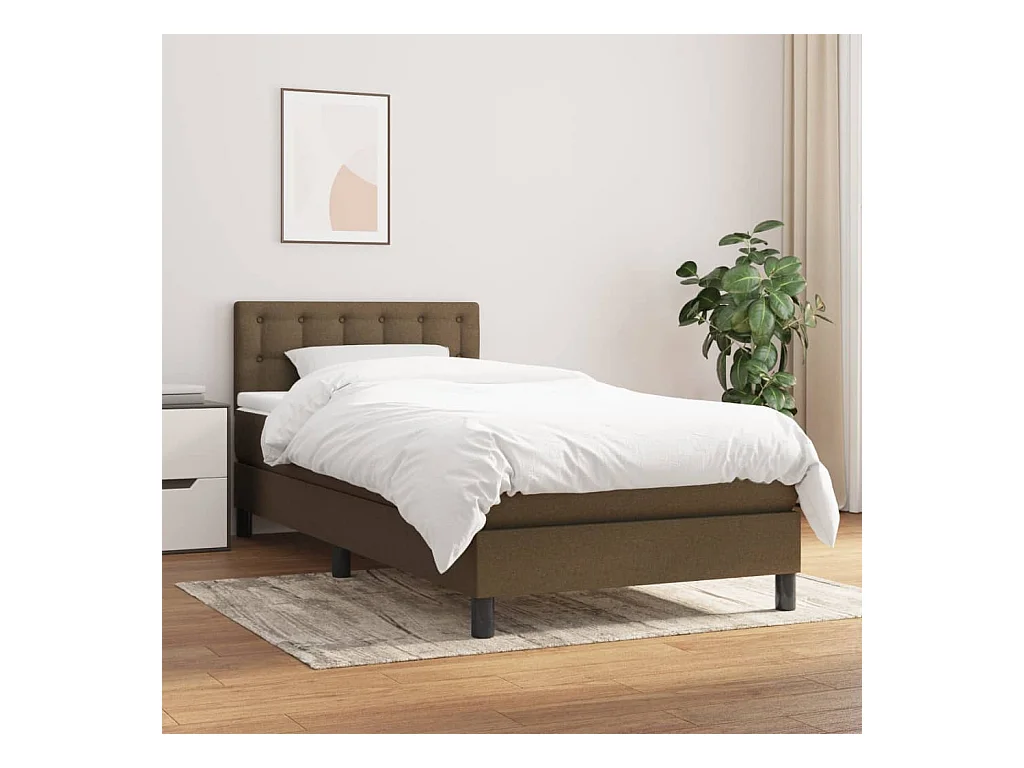 Letto a molle con materasso in tessuto marrone scuro 100 x 200 cm