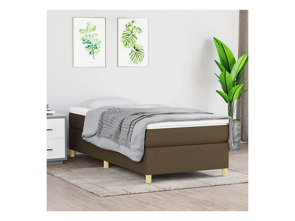 Letto a molle con materasso in tessuto marrone scuro 90 x 190 cm