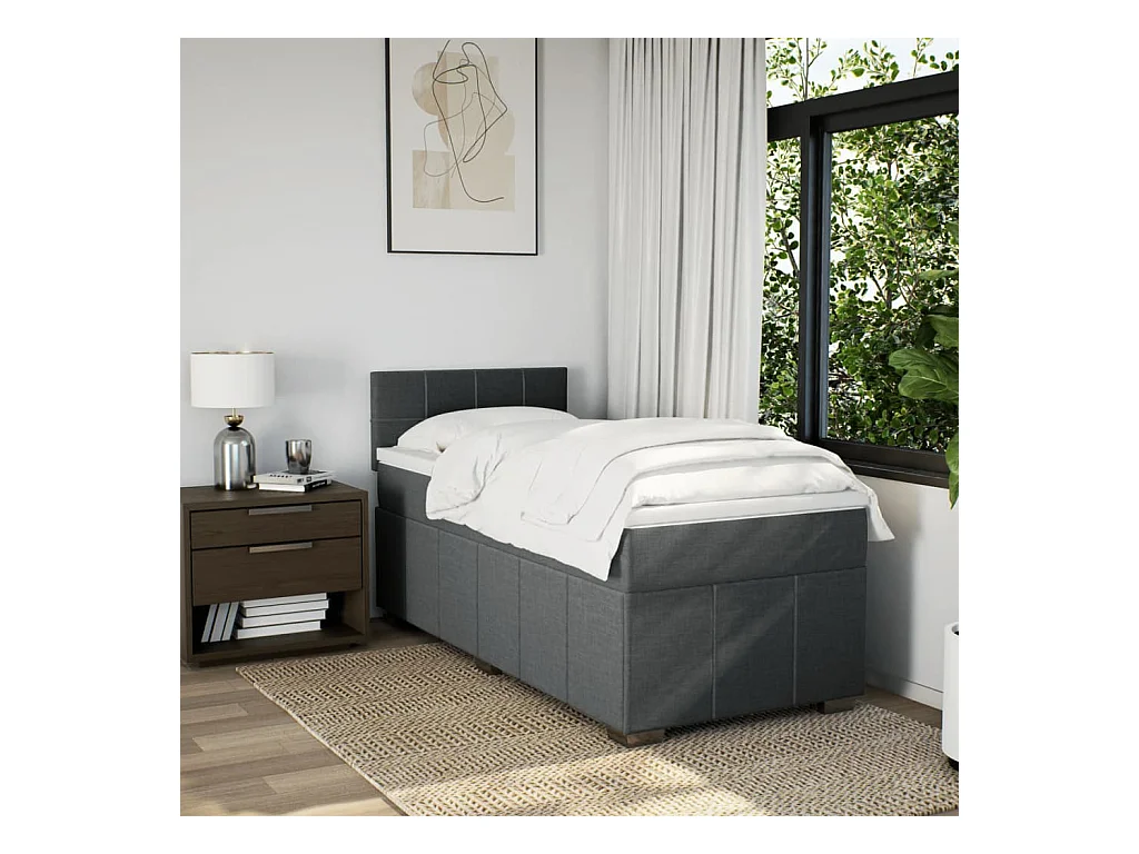 Rete a doghe con materasso Tessuto grigio scuro 90x200 cm