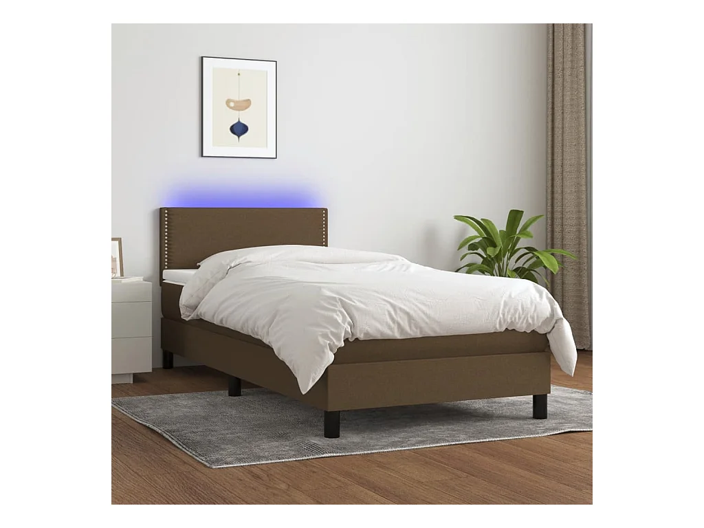 Rete a doghe e materasso con LED Marrone scuro 80x200cm